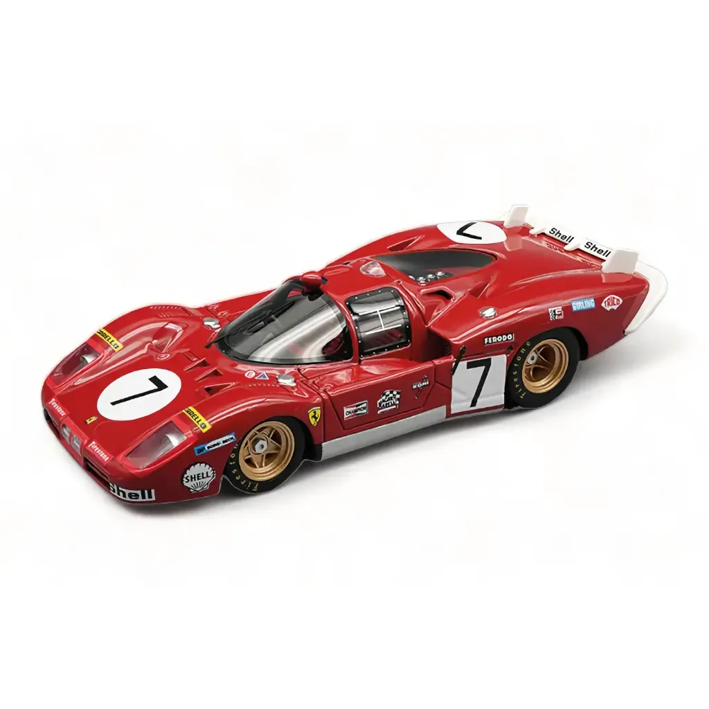 Ferrari 512 S Long Tail med nummer 7 kørt af Ronnie Peterson og Derek Bell under Le Mans 1970. Modellen er lavet af Tecnomodel i skala 1:43 (ca. 12 cm).