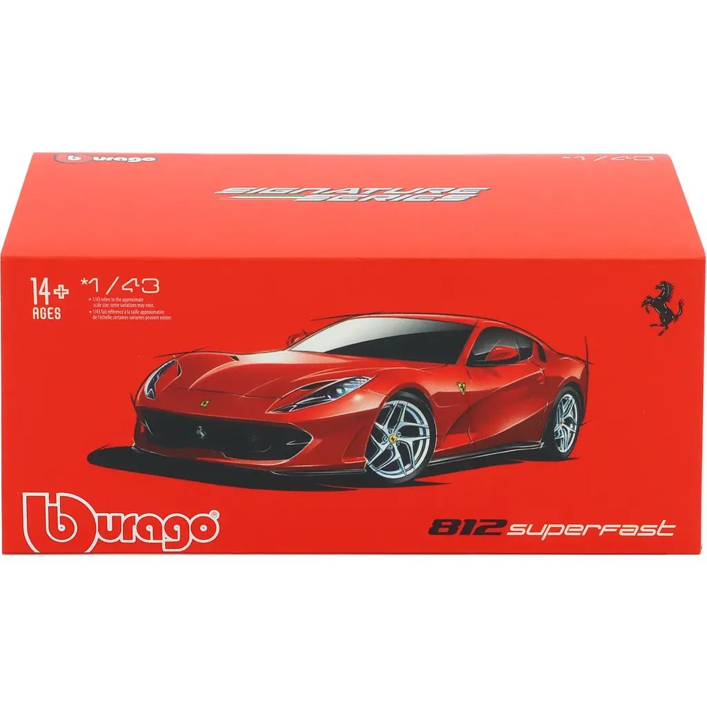 Rød Ferrari 812 Superfast modelbil fra Bburago og Signature Series i skala 1:43 (10,5 cm).