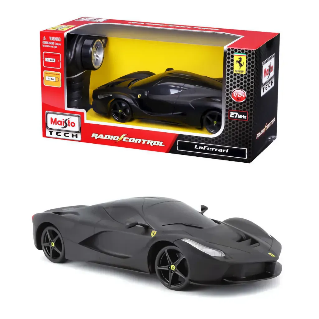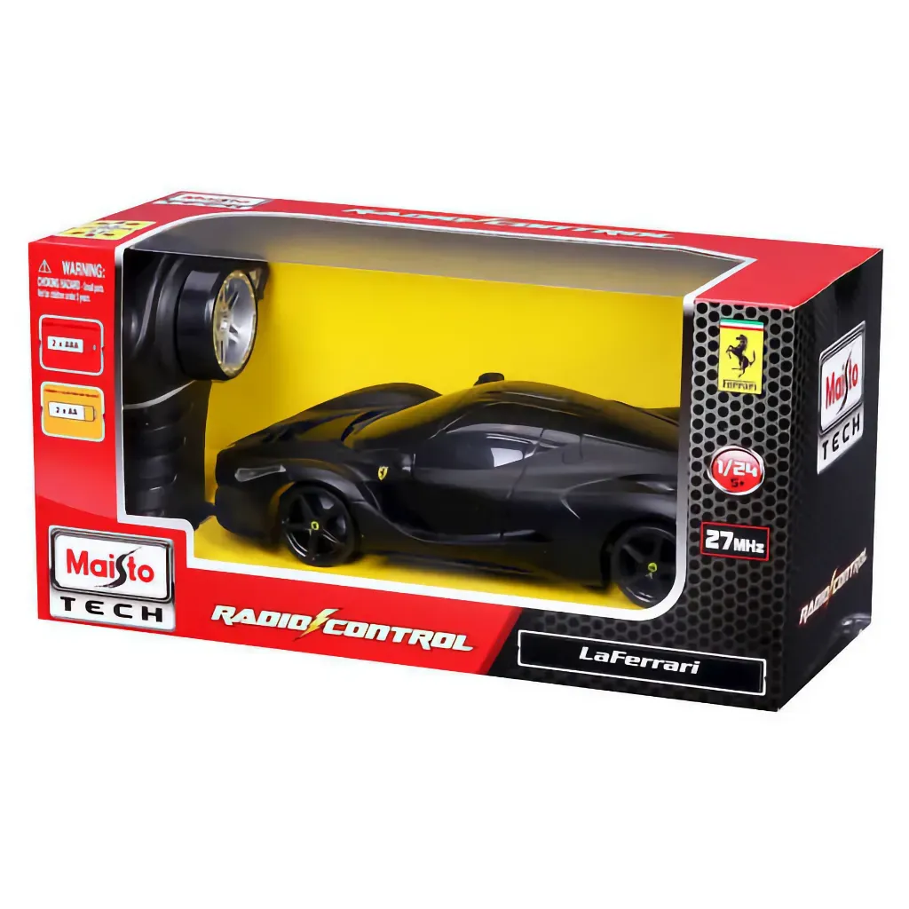 Sort Ferrari LaFerrari radiostyret bil fra Maisto og Tech R/C-serien. Bilen er 21 cm lang (skala 1:24).
