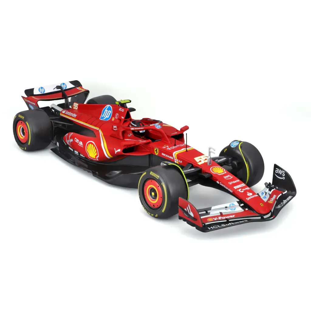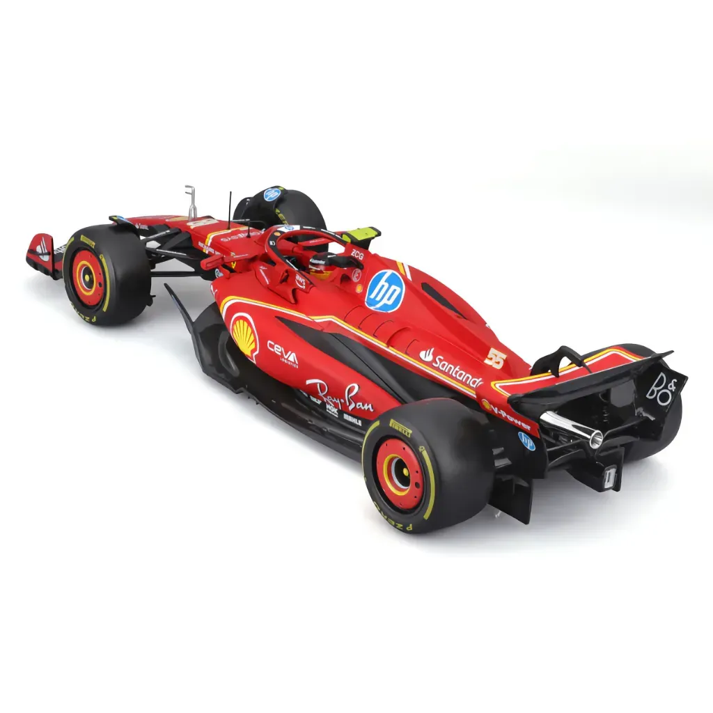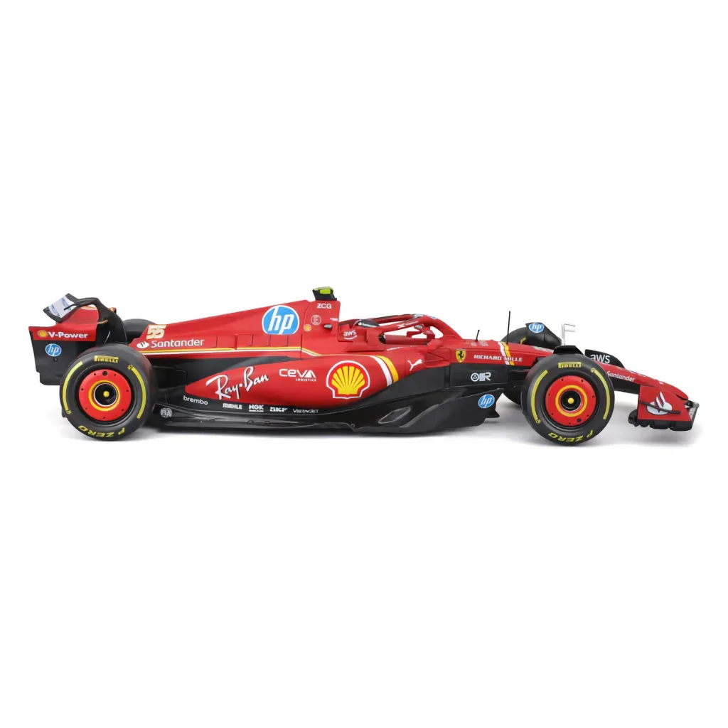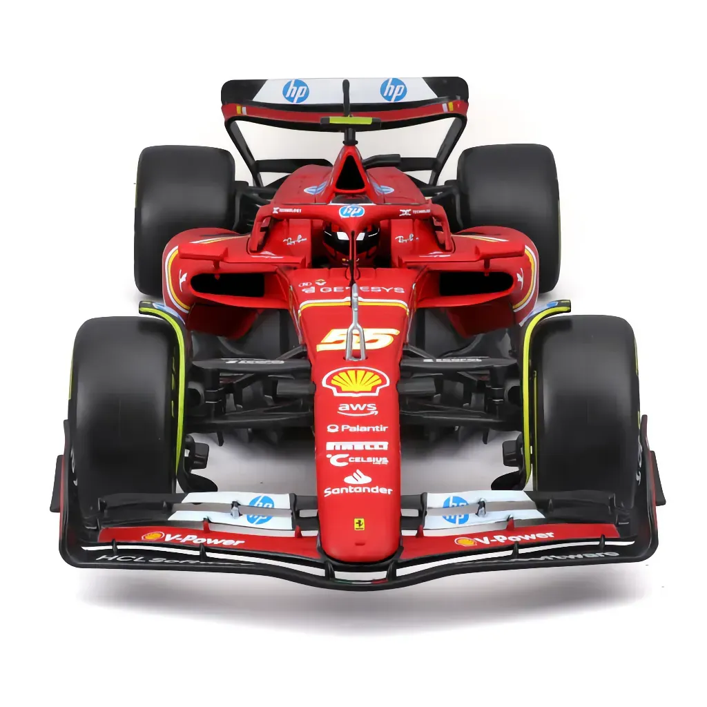 Ferrari SF-24 med nummer 55 blev kørt af Carlos Sainz i sæsonen 2024. Denne modelbil er lavet af Bburago i skala 1:18, hvilket betyder, at den er 32 cm lang.