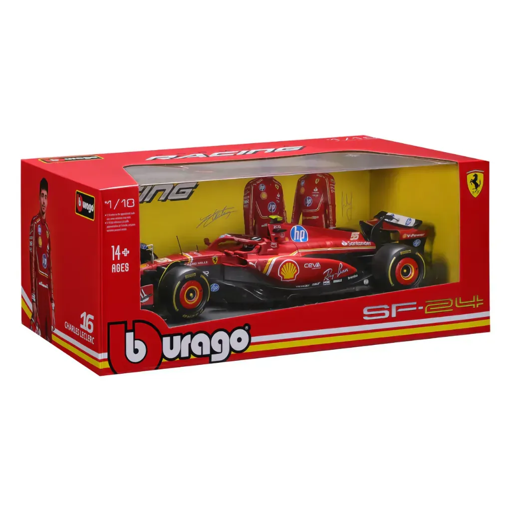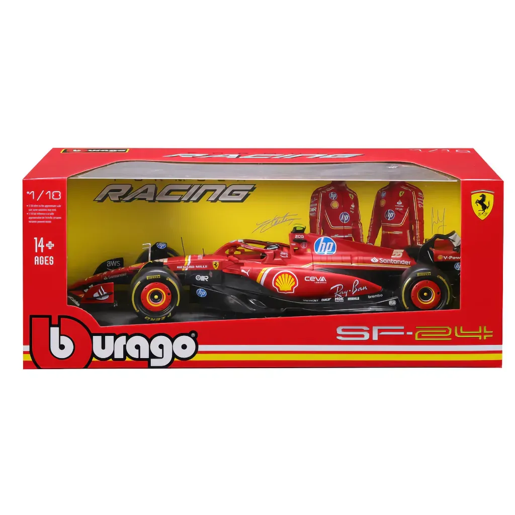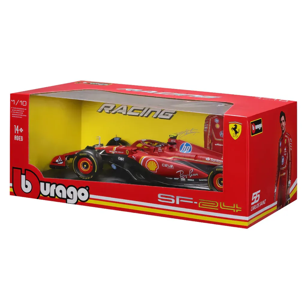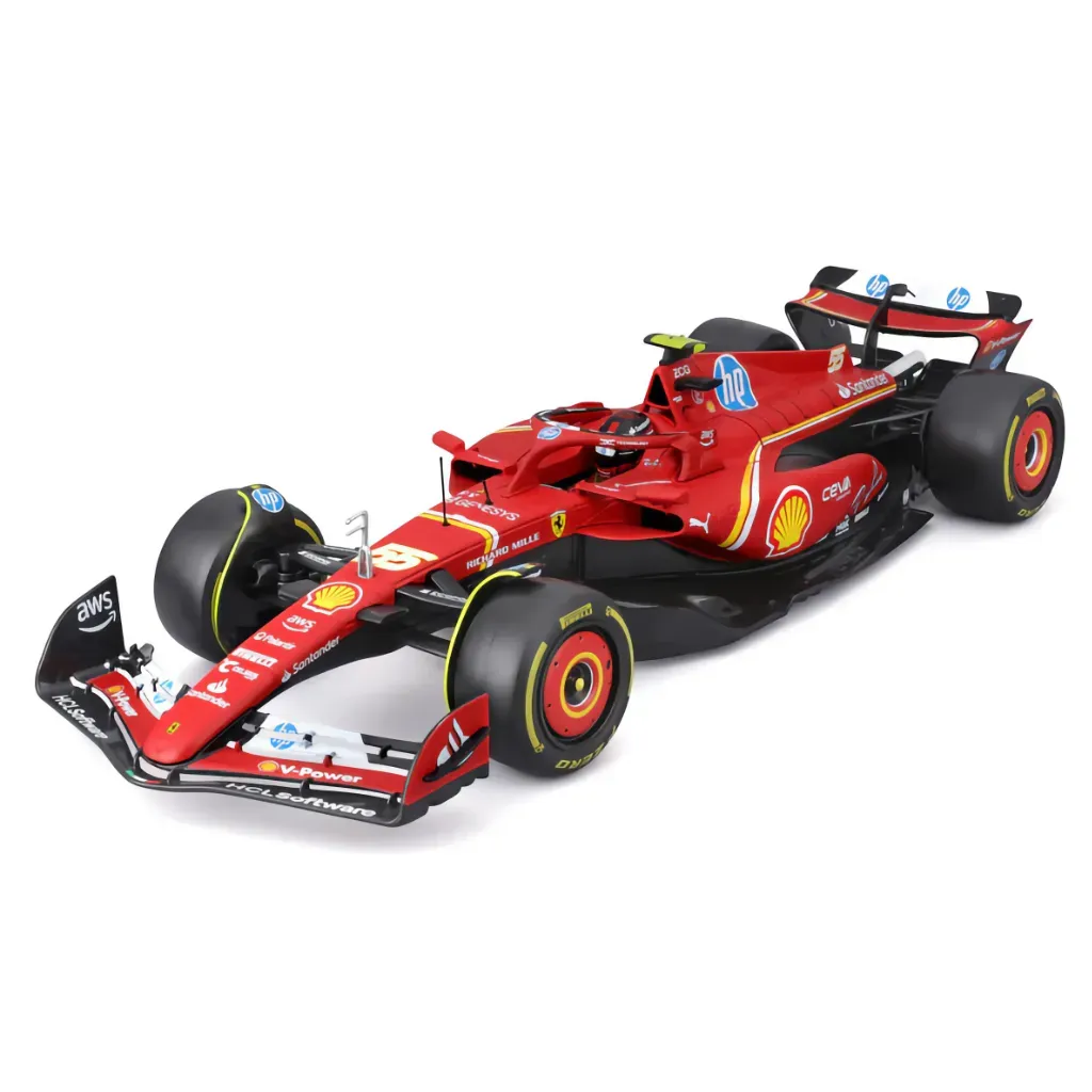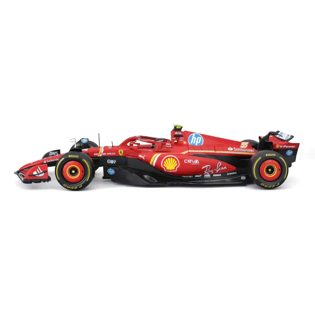 Ferrari SF-24 med nummer 55 blev kørt af Carlos Sainz i sæsonen 2024. Denne modelbil er lavet af Bburago i skala 1:18, hvilket betyder, at den er 32 cm lang.