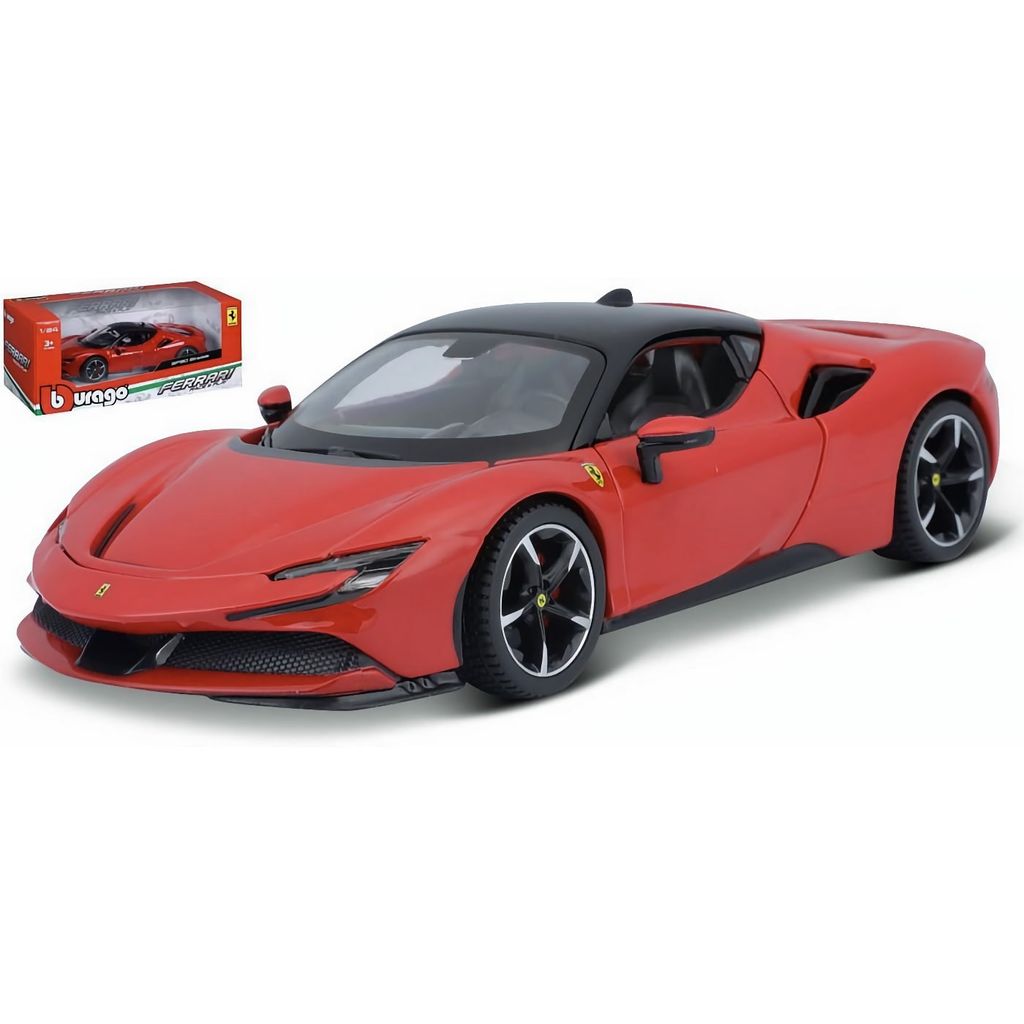 Ferrari SF90 Stradale i en flot rød farve fra italienske Bburago.