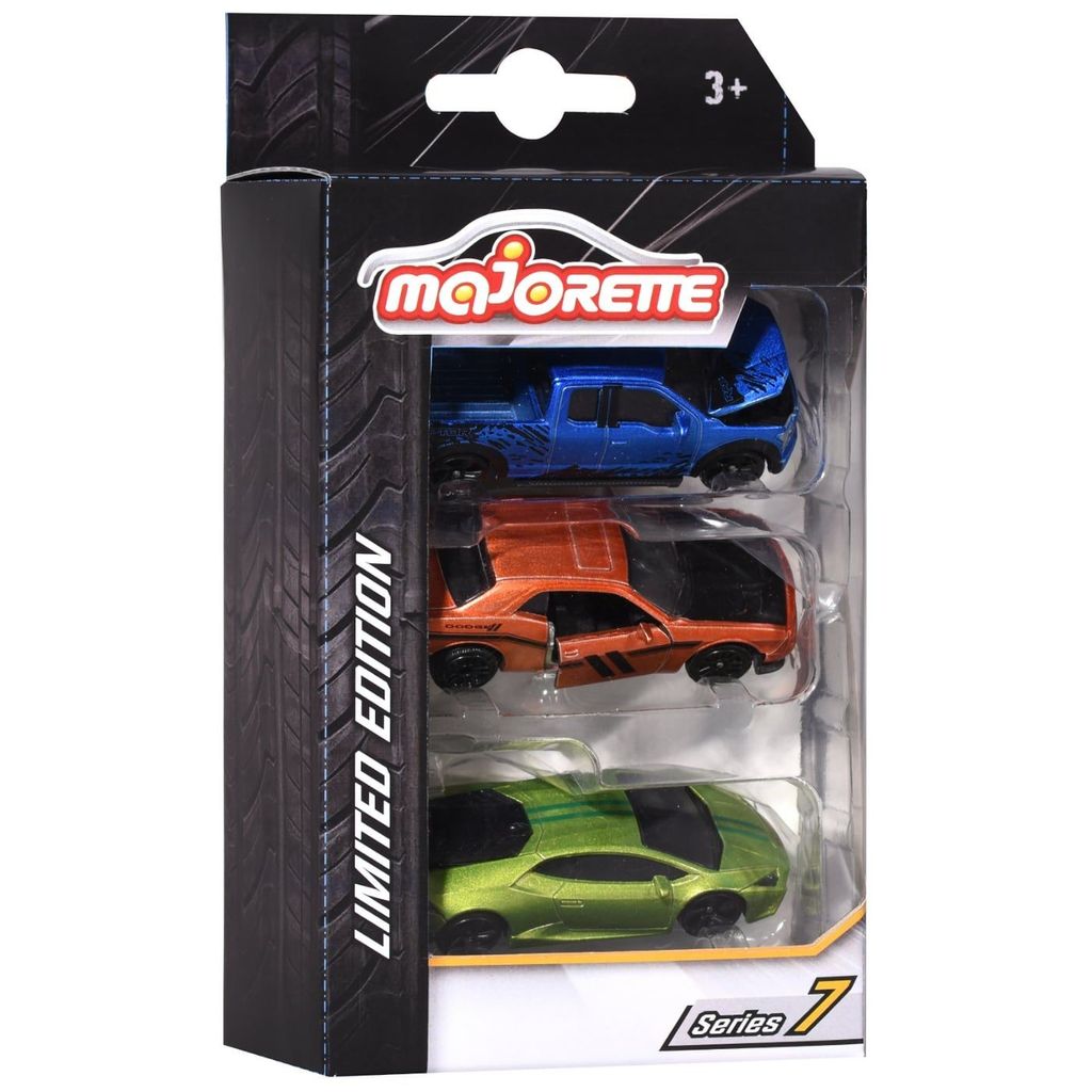 3-pak med legetøjsbiler fra Majorette i deres Limited Edition Series 7. Bilerne indgår som nedenfor, se også billeder.