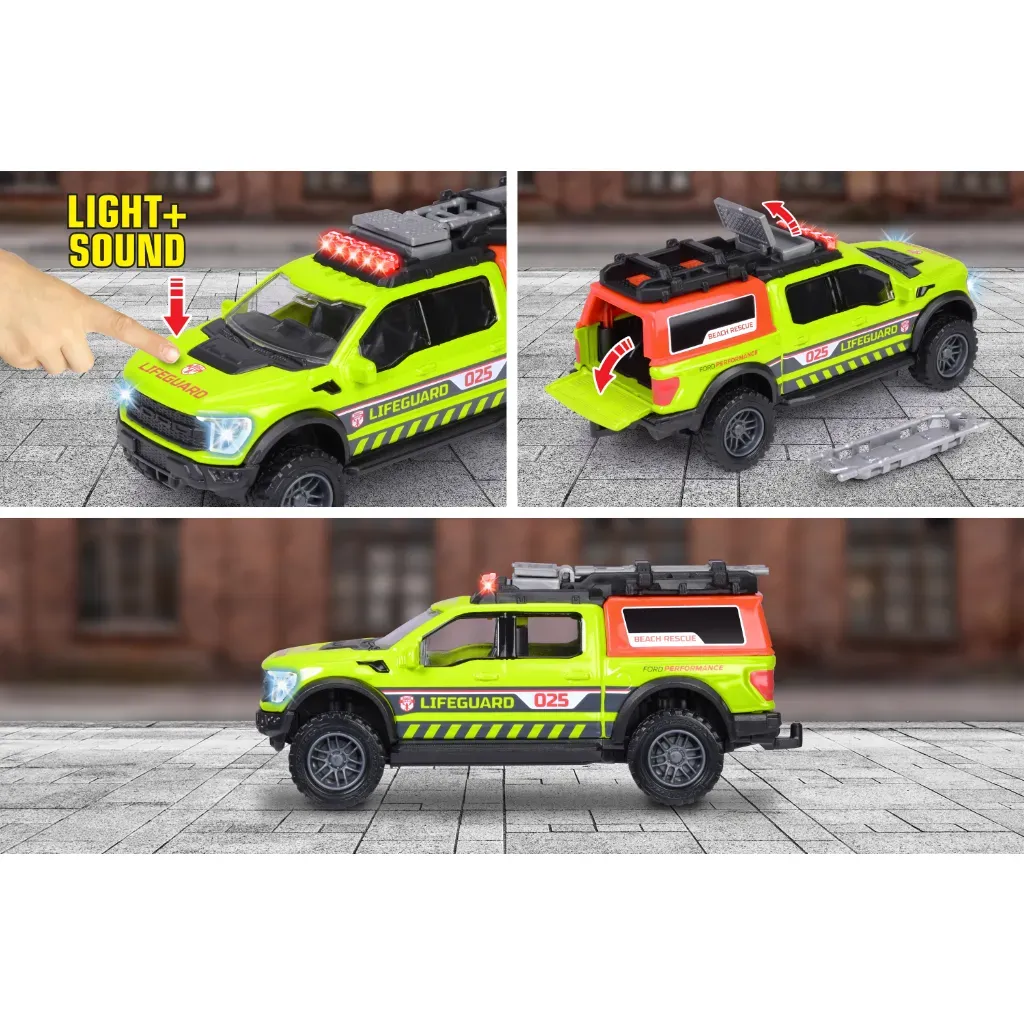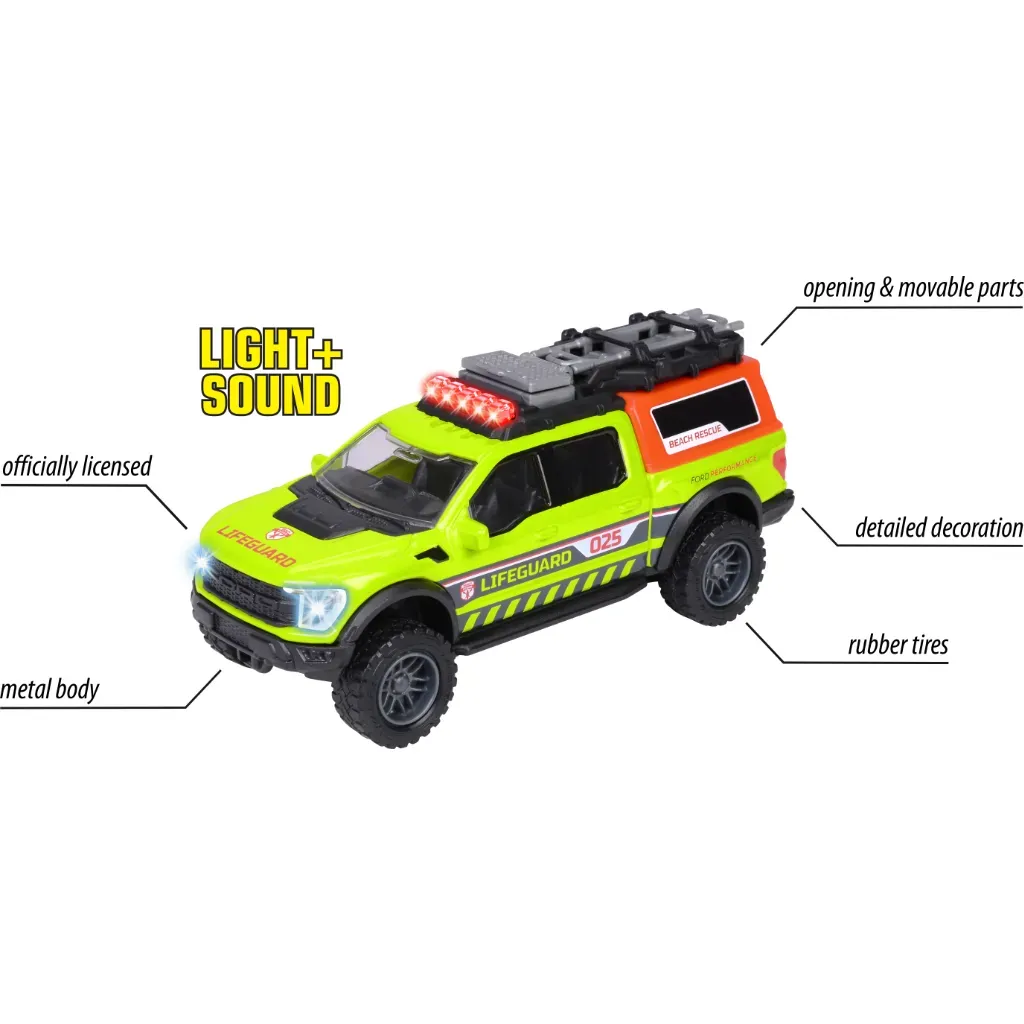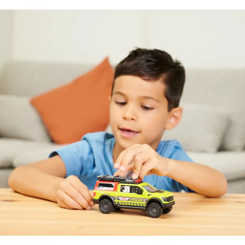 Ford F-150 Raptor Lifeguard fra Majorette Grand Series er en legetøjsbil med lyd og lys.