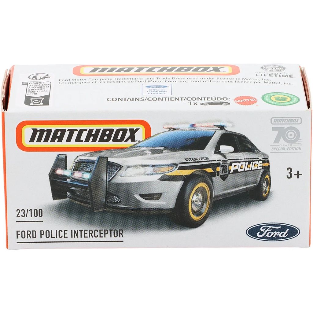 Ford Police Interceptor fra Matchbox og Power Grab-serien, hvor denne legetøjsbil er bil nummer 23/100.