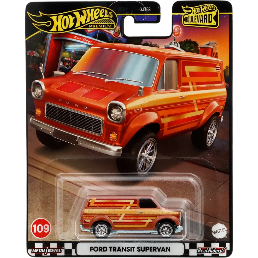Ford Transit Supervan fra Hot Wheels og Boulevard-serien (Mix 4, 2024), hvor denne bil er nummer 109.