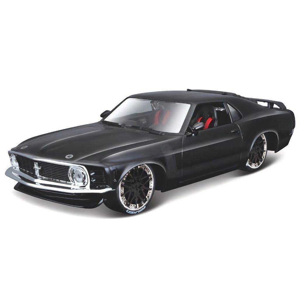 Sort, som den skal være, Ford Mustang Boss 302 modelår 1970. Bilen er en legetøjsmodelbil, der anbefales fra 8 år og er tilpasset til blid leg af større børn eller til samling og dekoration. Modellen er produceret af Maisto og er i skala 1:24, hvilket i dette tilfælde giver os en Mustang Boss på omkring 19 centimeter.