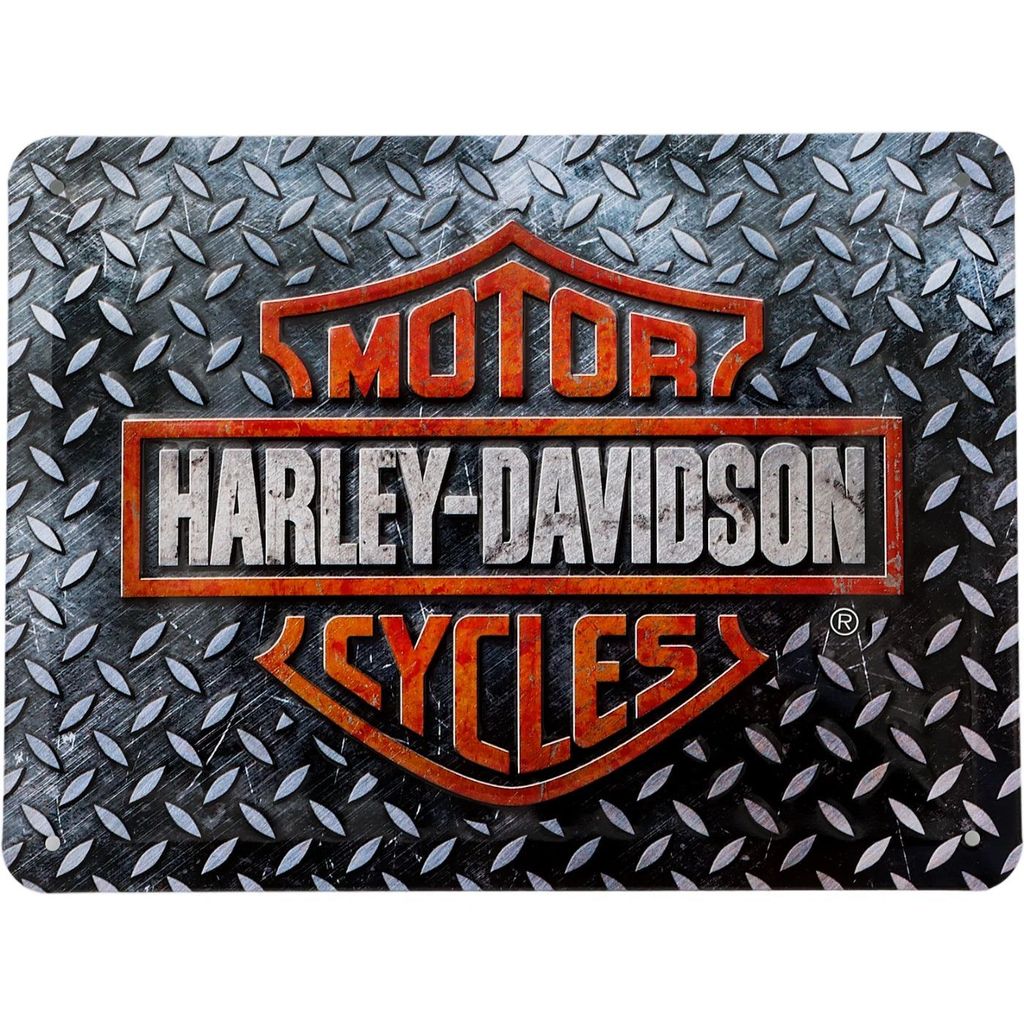 Blikskilt med Harley-Davidson-logo.