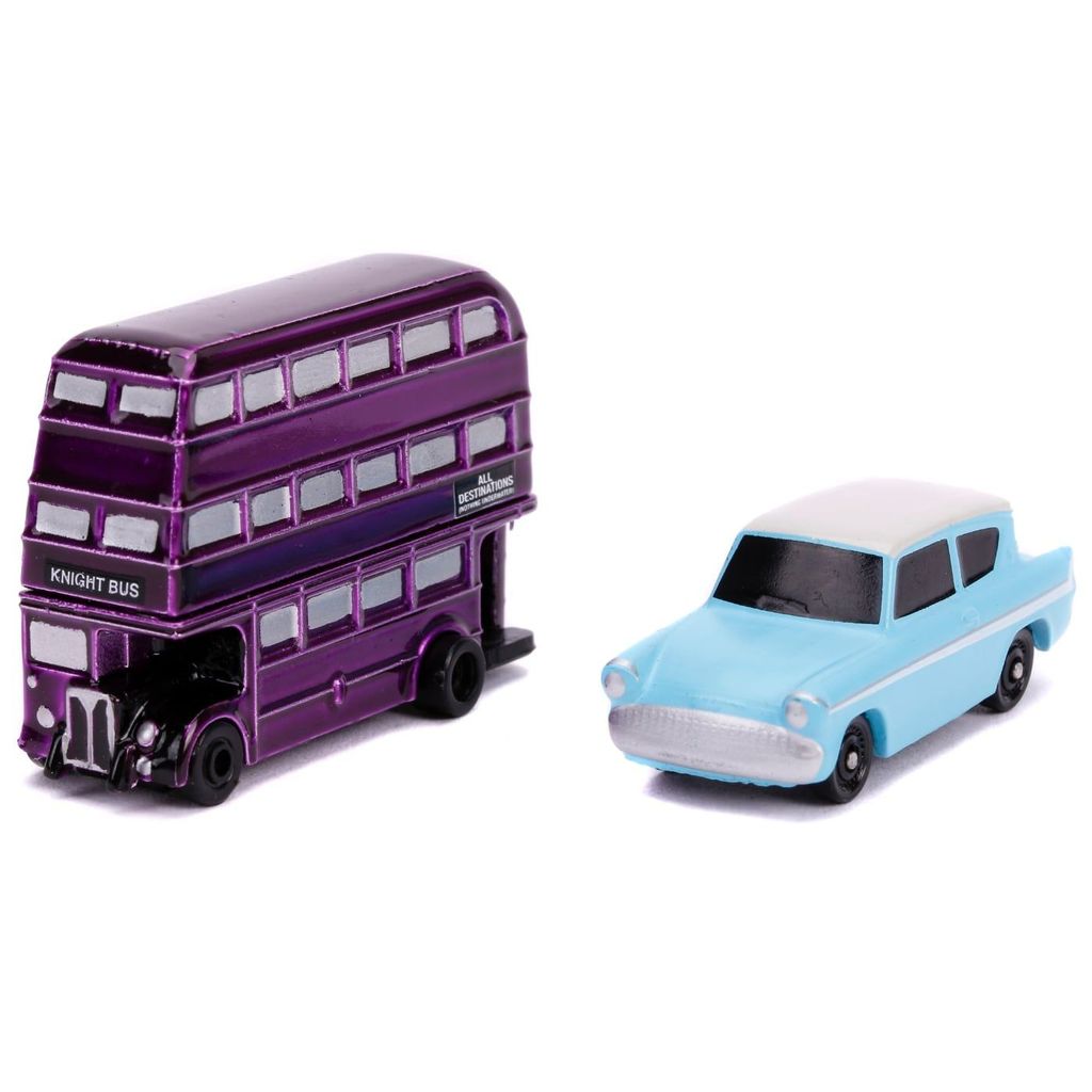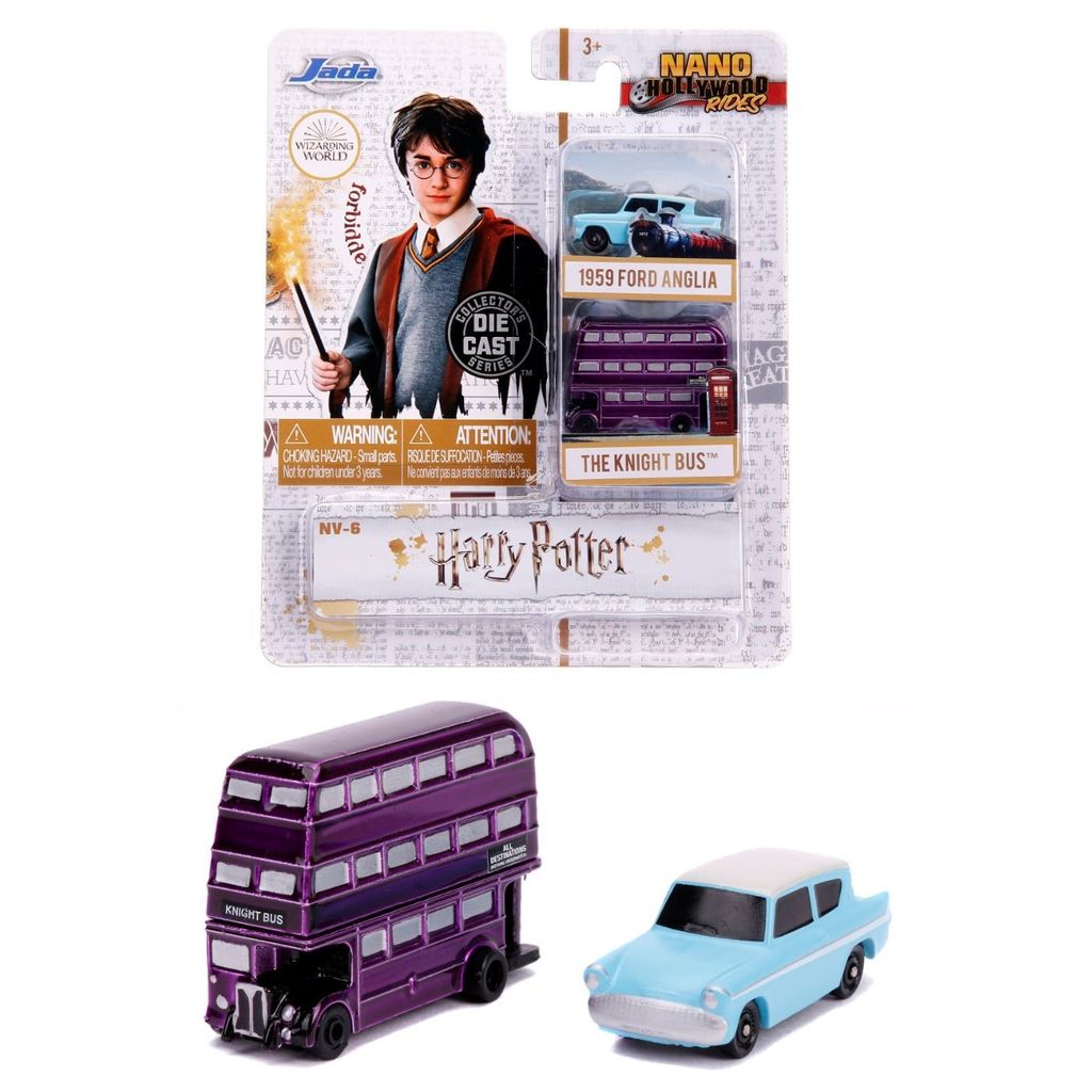 Sæt med 2 små køretøjer (Ford Anglia og Knight Bus triple-decker) fra Harry Potter-filmene fra legetøjsproducenten Jada Toys, som producerer disse køretøjer på licens fra Warner Bros. Produktet er en del af Nano Hollywood Rides-serien, sæt NV-6, som egentlig er en serie for samlere, men køretøjerne fungerer også godt som legetøj.