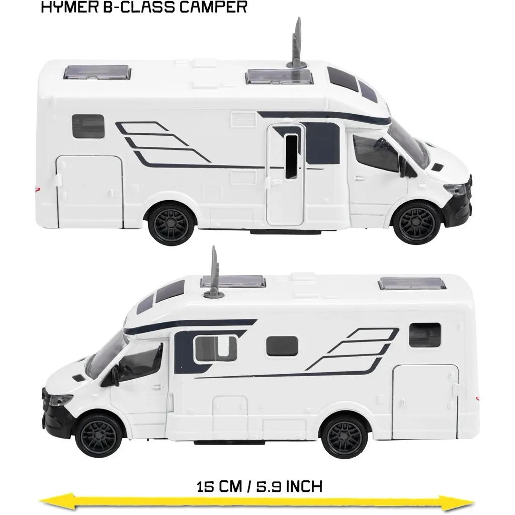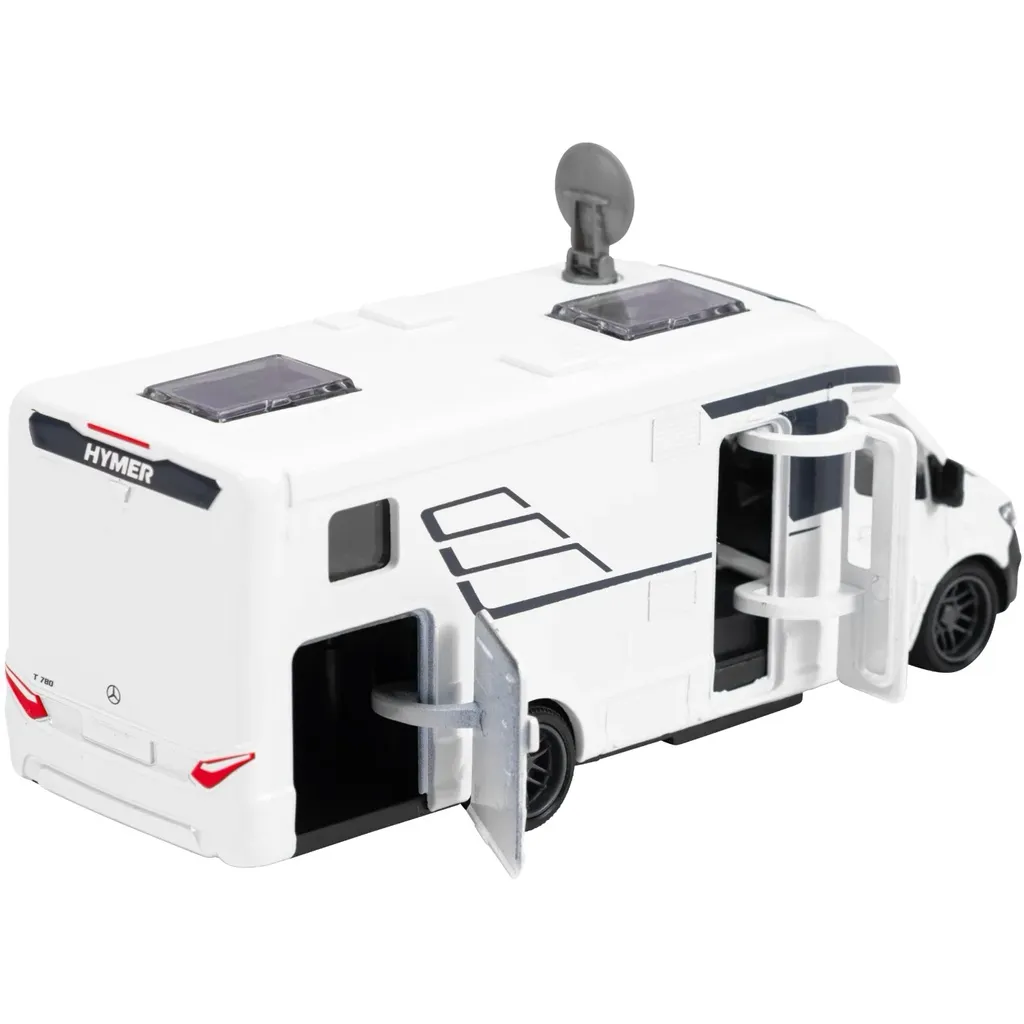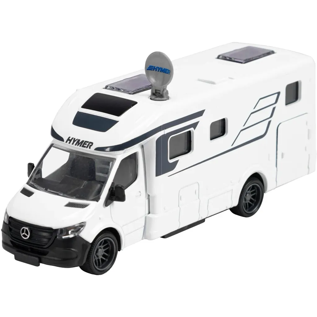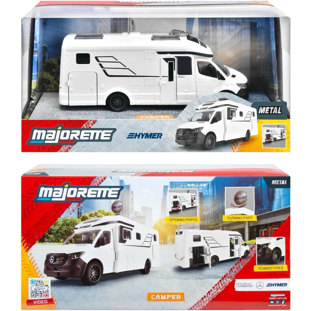 Autocamper fra Hymer udviklet af Majorette i deres serie af større køretøjer, Majorette Grand Series. Autocamperen er hvid og har dele, der kan åbnes. Længde 19 cm.