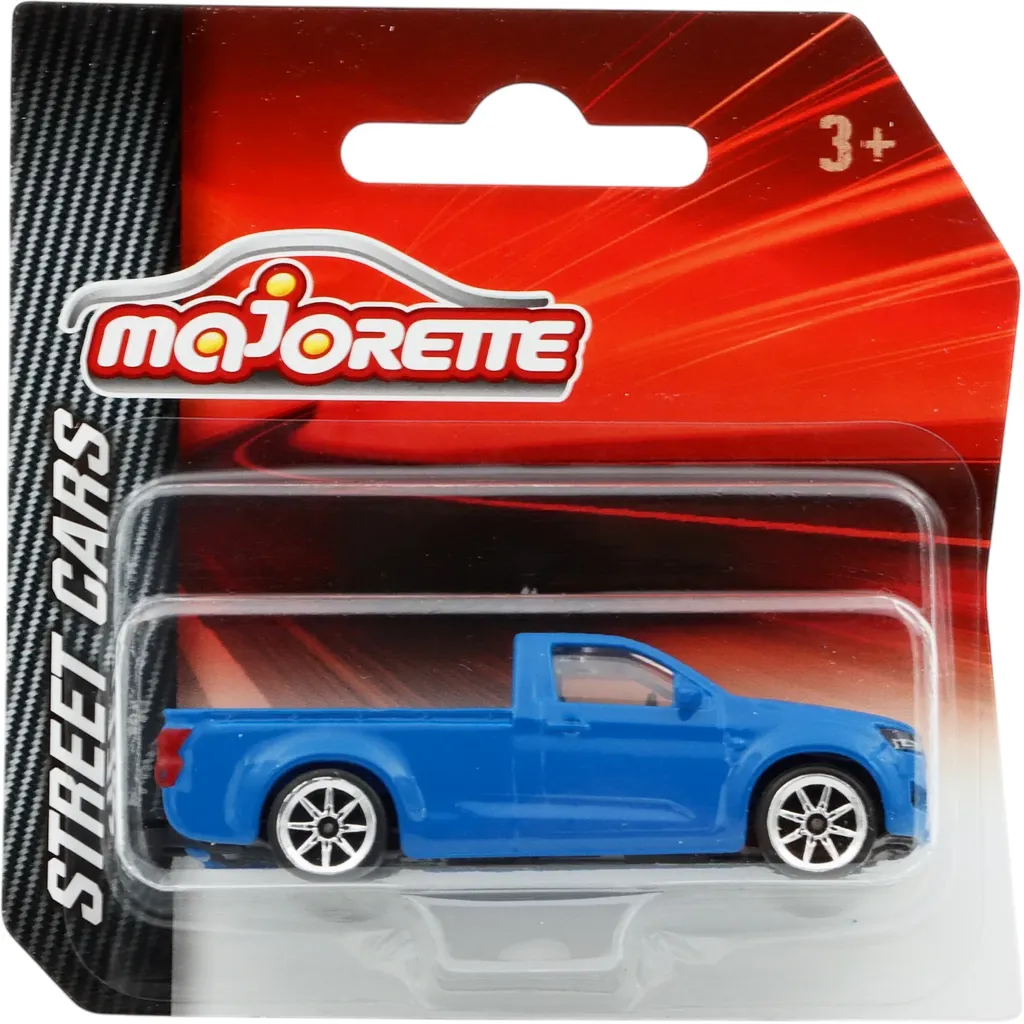 Isuzu D-Max med blå lak fra Majorette og Street Cars-serien. Bilen er lavet af metal med plastdetaljer og anbefales fra 3 år.