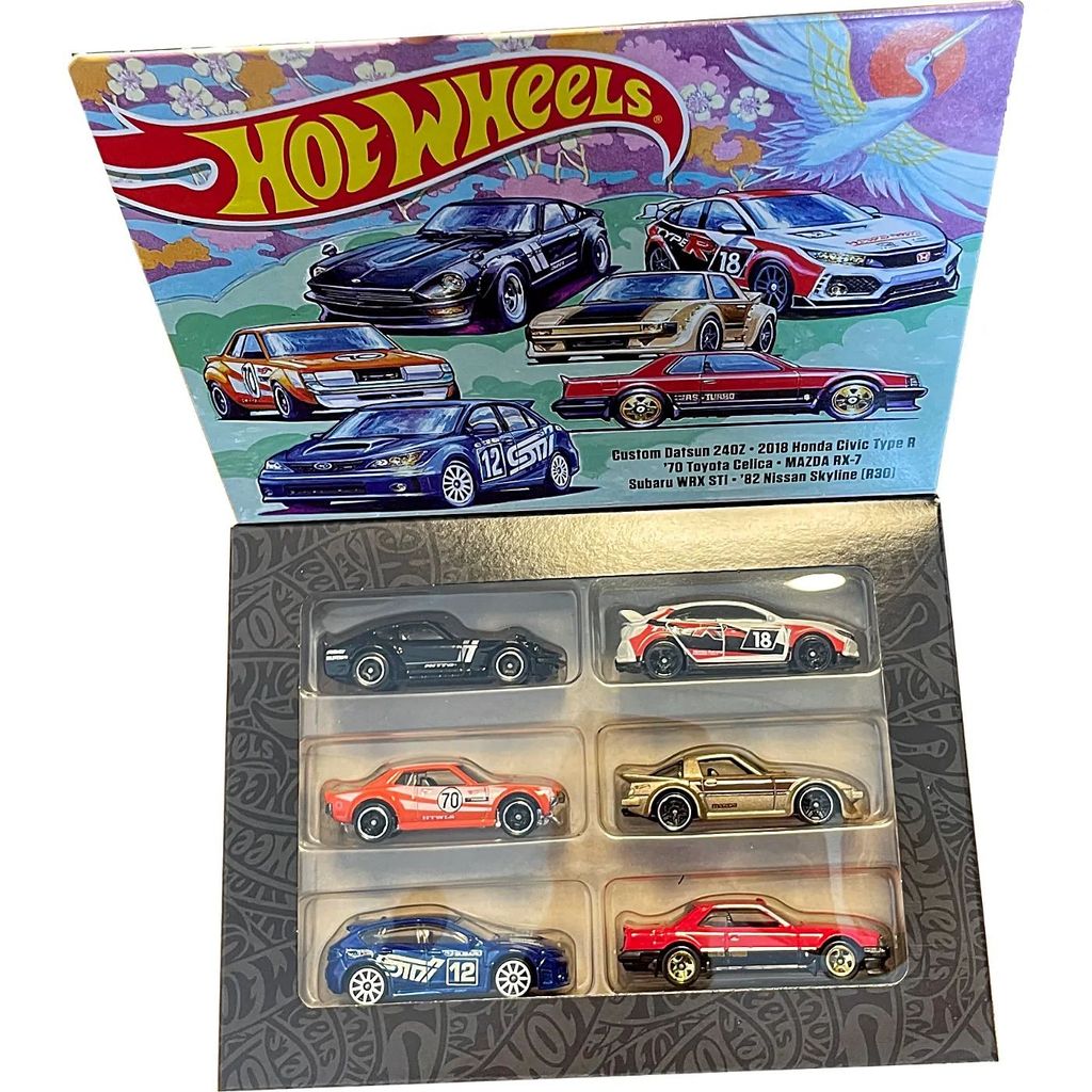 6-pak med biler fra Hot Wheels (Japanese Car Culture Themed Multipack). Pakken, der blev lanceret i slutningen af 2022, indeholder nedenstående JDM-biler.