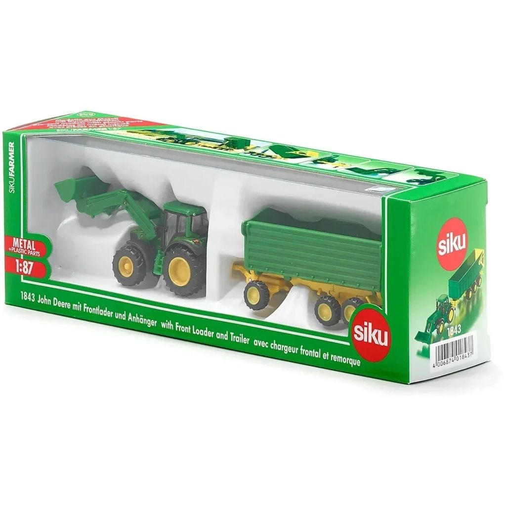 John Deere 6920 S med frontlastare och trailer - Siku - 1:87