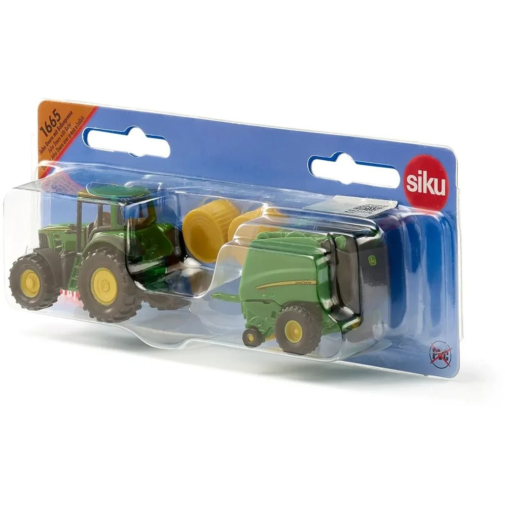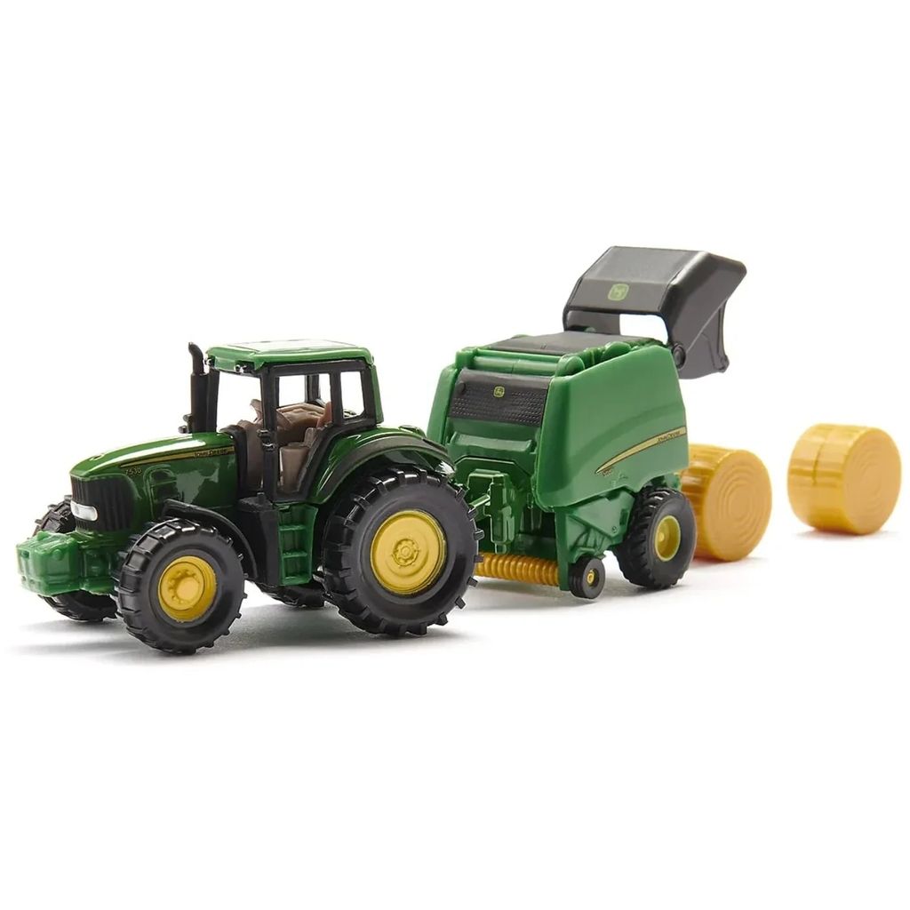 John Deere 7530 med rundbalspress - 1665 - Siku - 13 cm