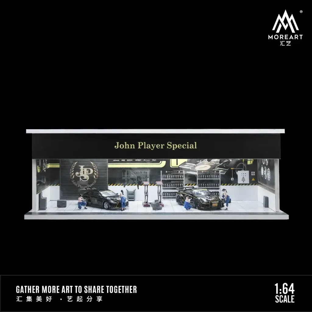 John Player Special Parking Garage med LED-belysning fra Black Box Diorama / MoreArt i skala 1:64.