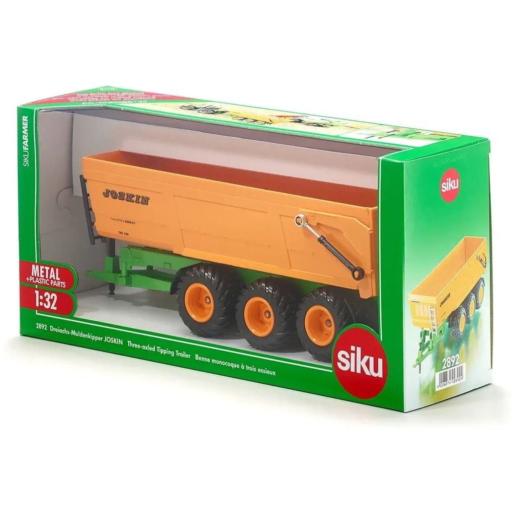 Joskin tiptrailer med tre hjulaksler. Skalaen er 1:32 (29 cm), og traileren er fremstillet af Siku og passer til Siku-traktorer i skala 1:32.