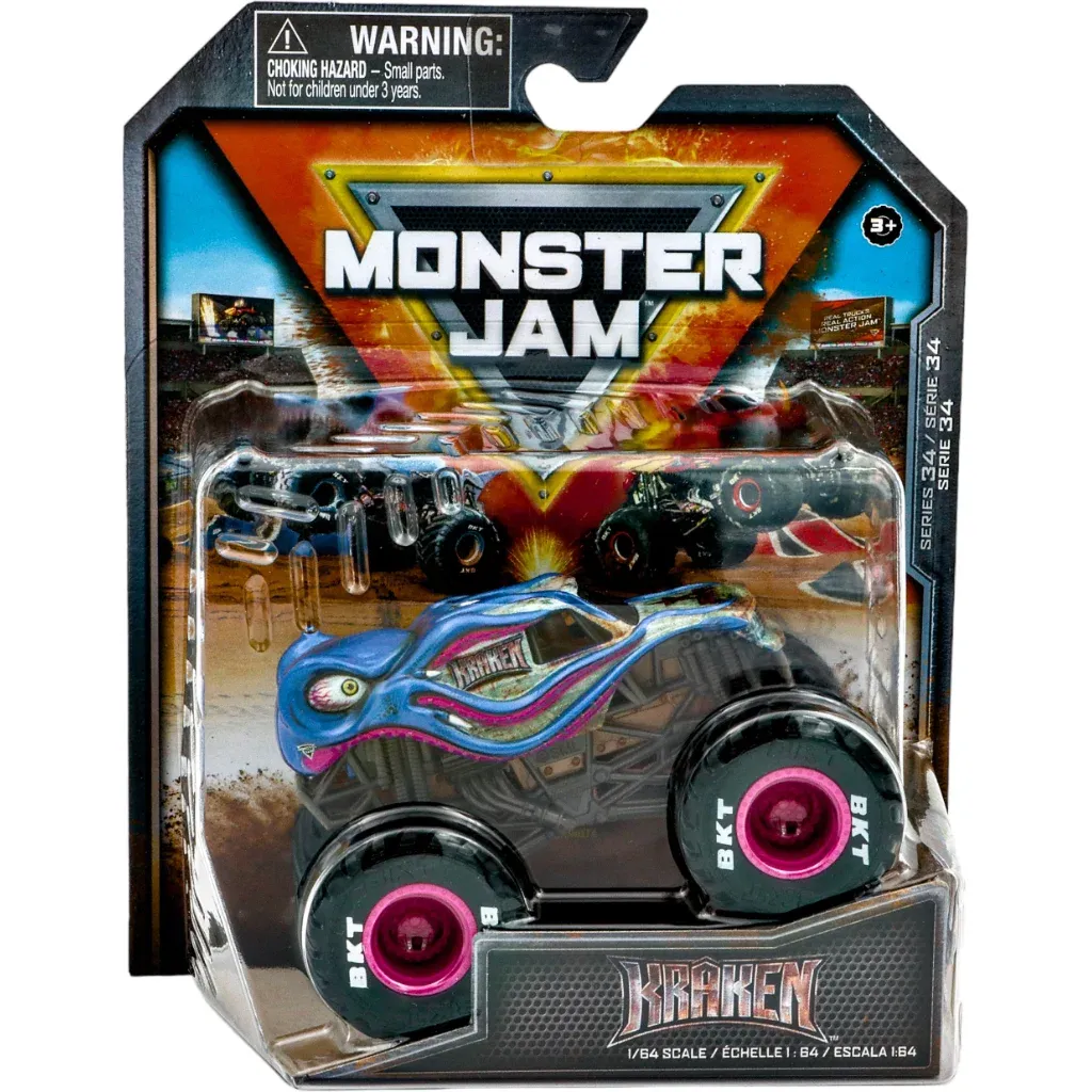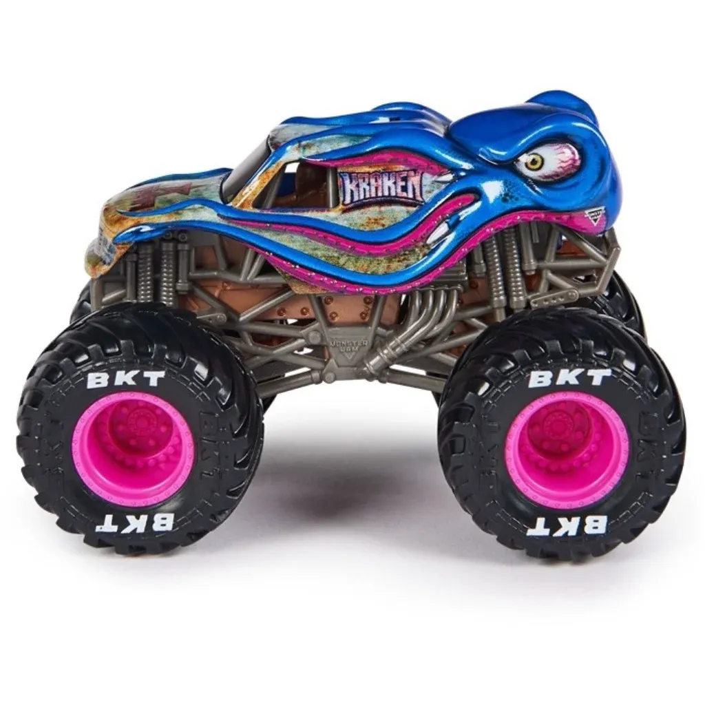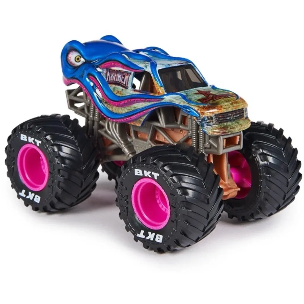 Monster Jam Kraken monster truck som Spin Master legetøjstruck. Trucken er i skala 1:64 (9,5 cm lang) og er en skalamodel af den rigtige Kraken-truck, der køres af chaufføren Nick Pagliarulo.