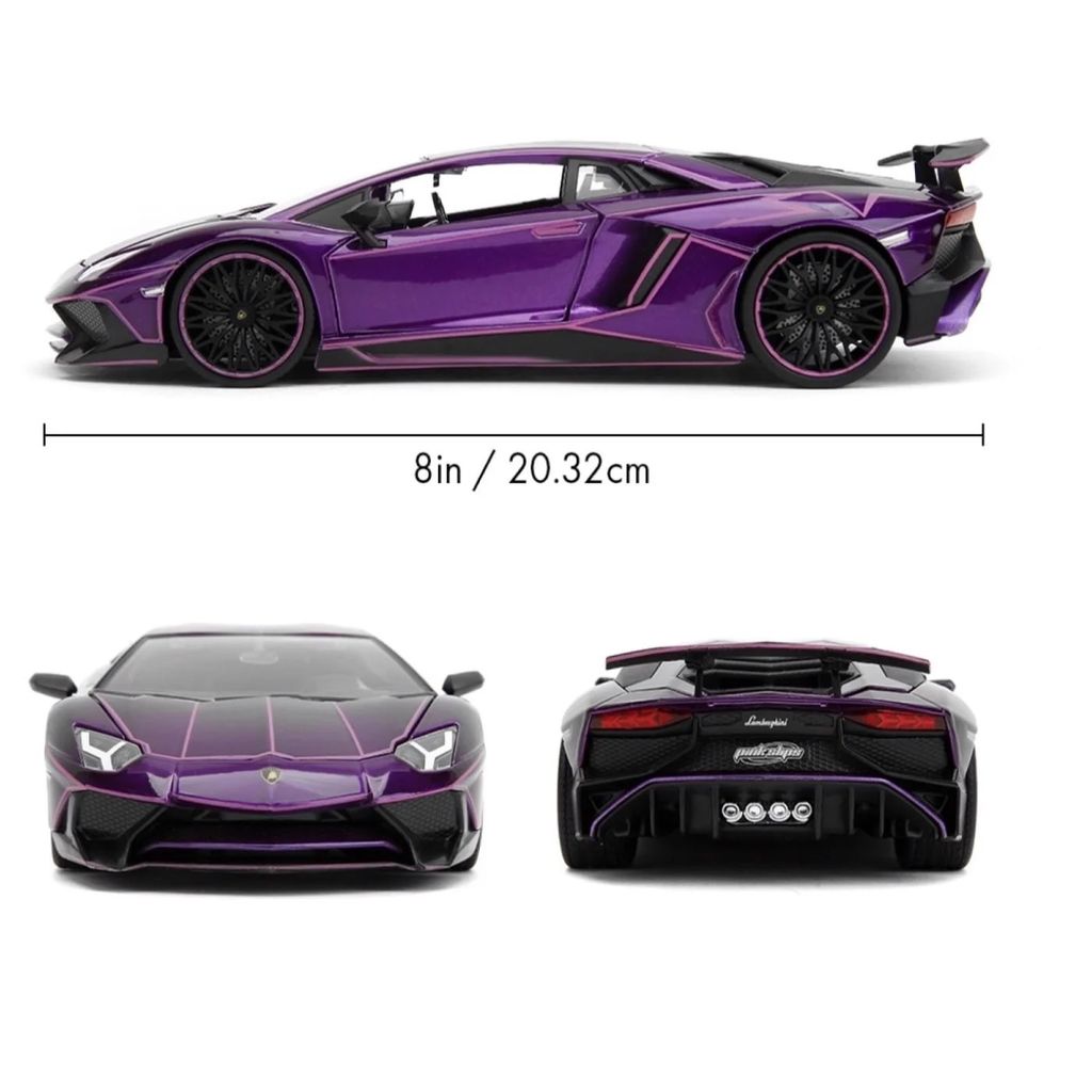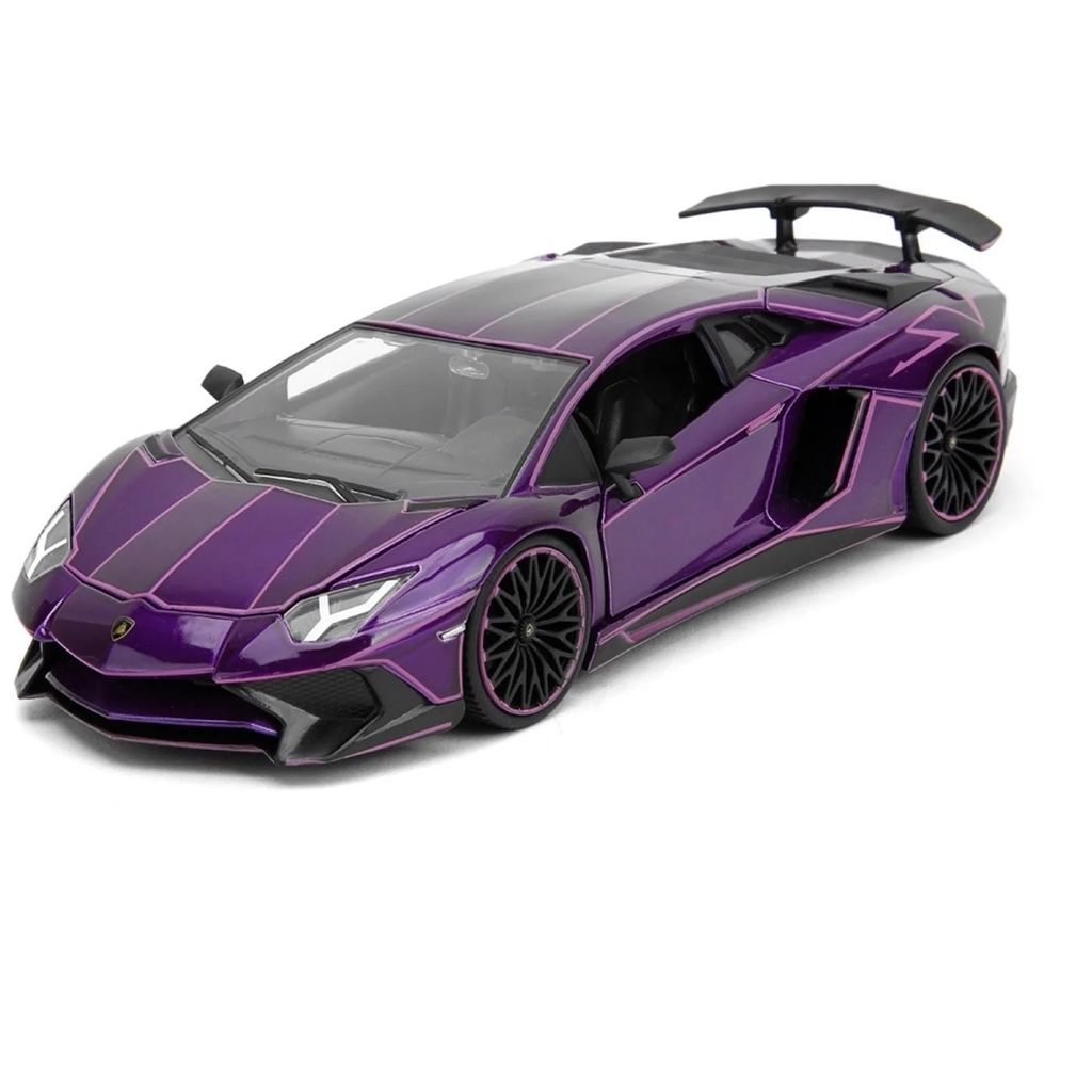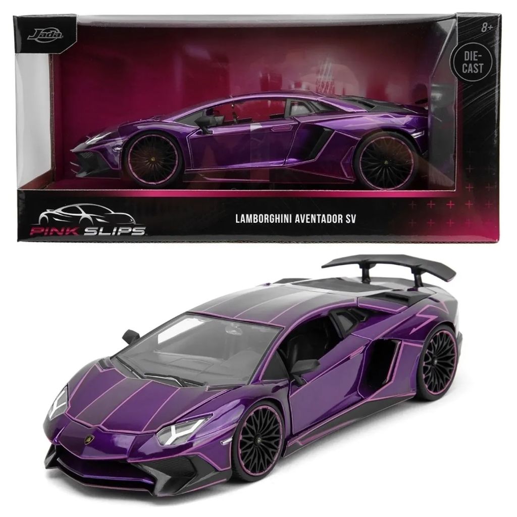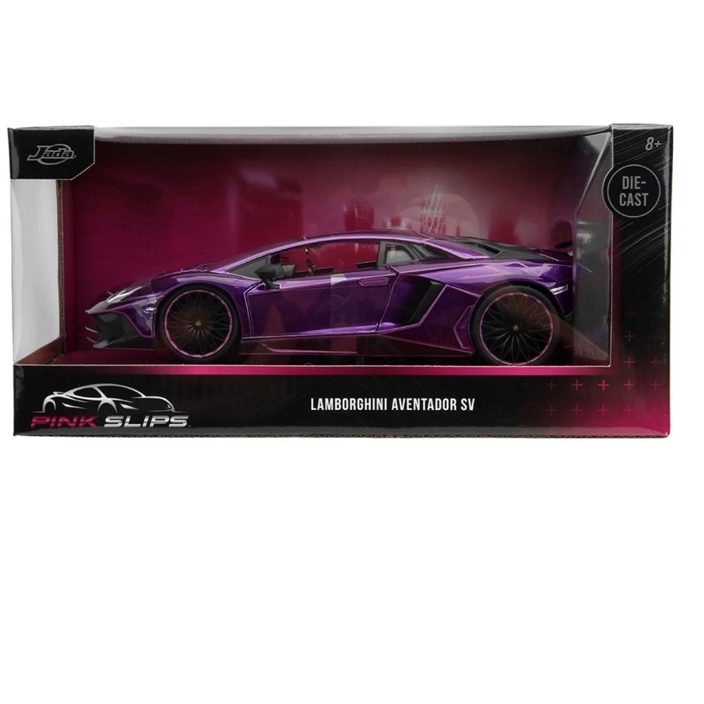 Lamborghini Aventador SV fra Jada Toys og deres Pink Slips-serie. Lamborghinien er lilla med pink og sorte elementer.