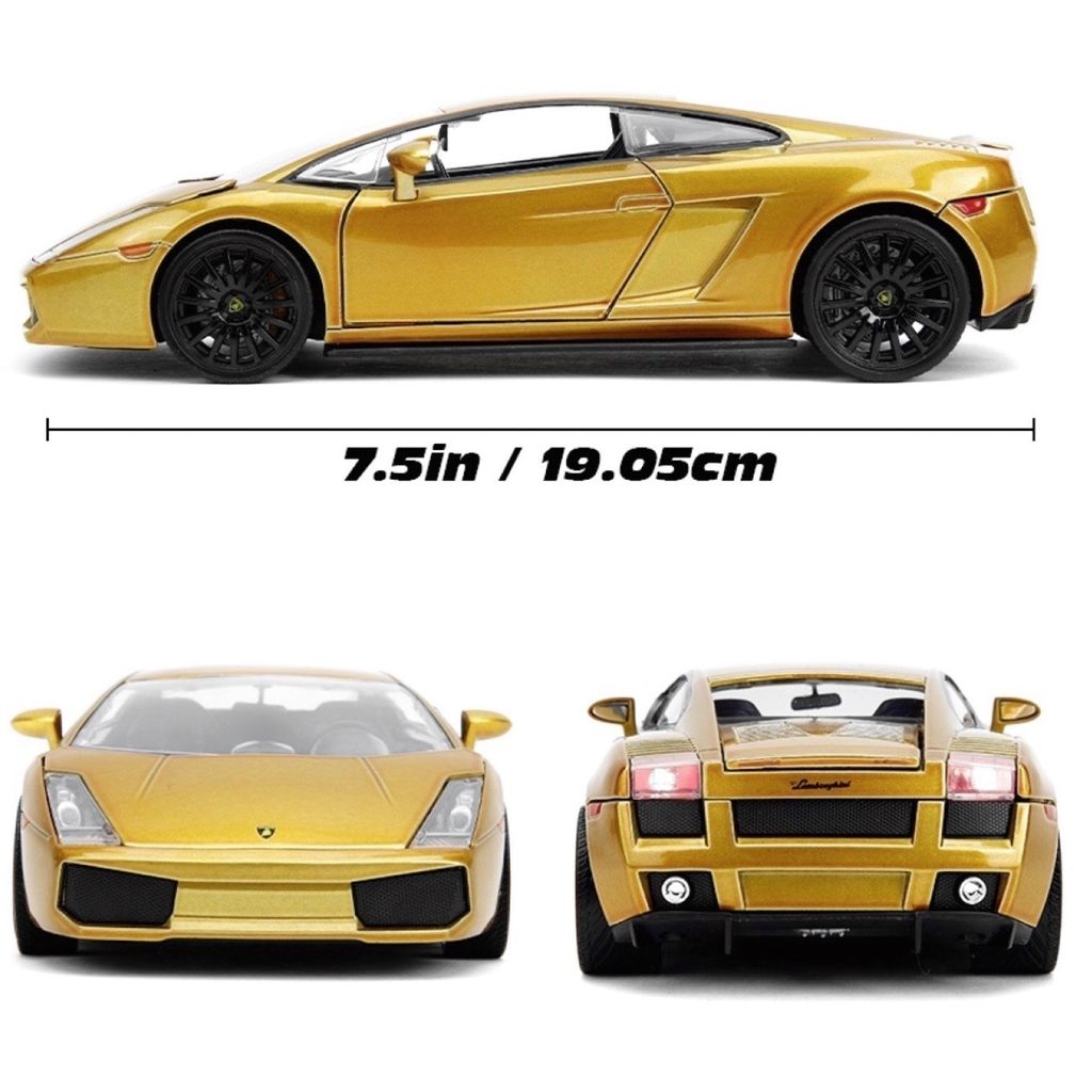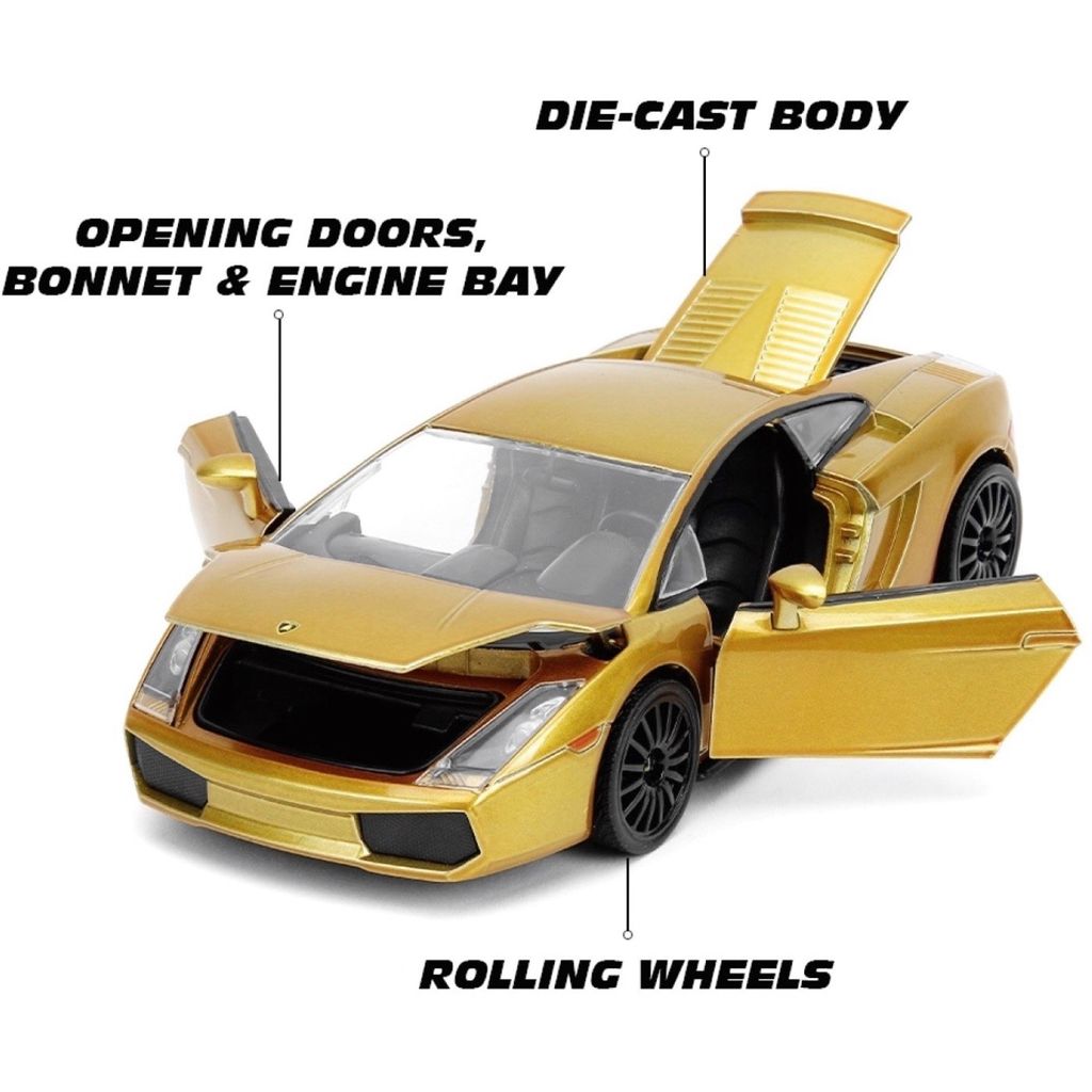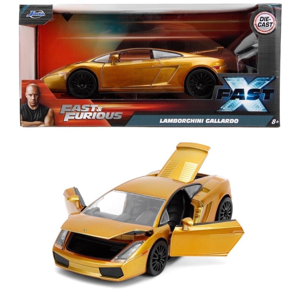 Lamborghini Gallardo, modelår 2003, i guld fra Jada Toys i skala 1:24 (19 cm). Bilen er fra filmen Fast & Furious 10.