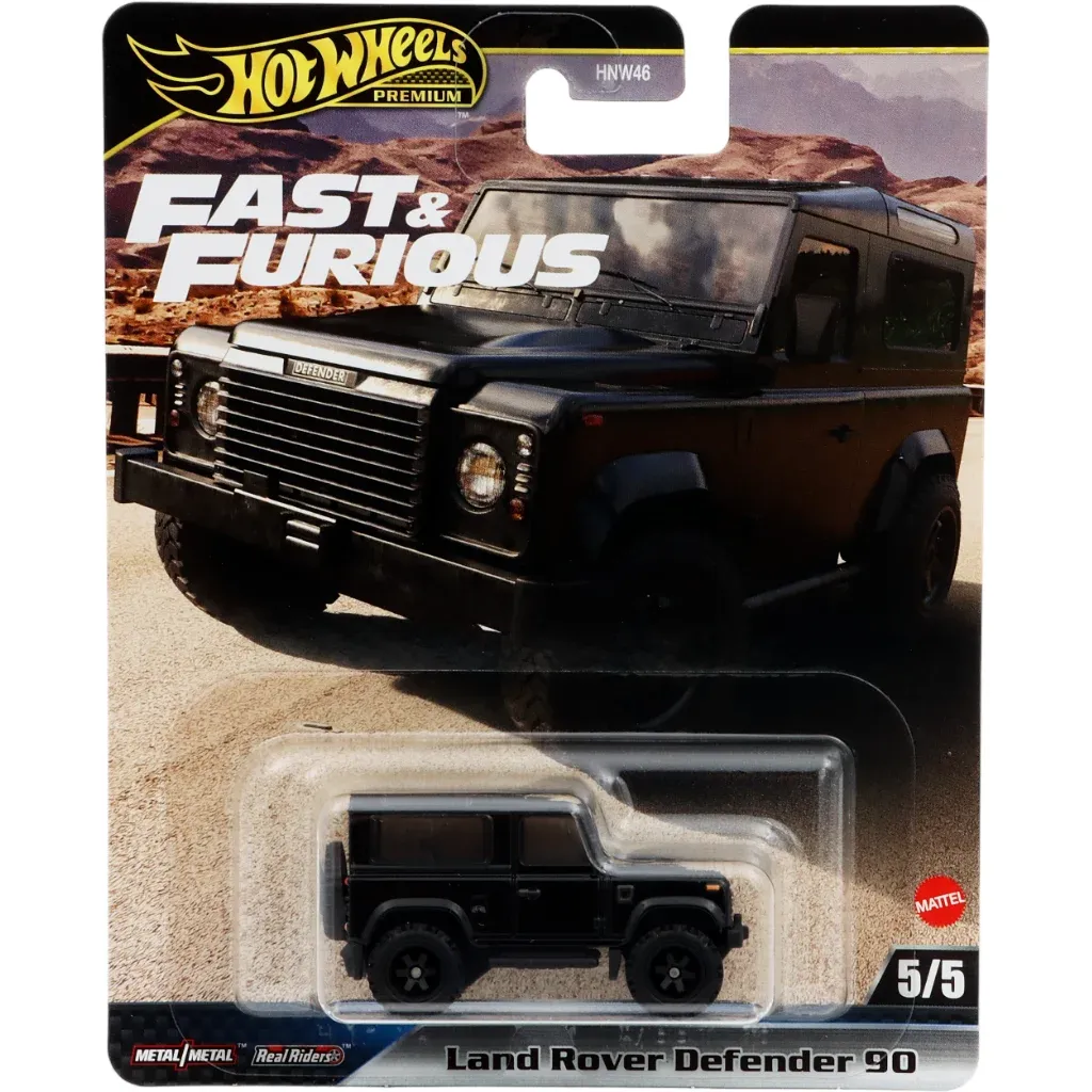 Sort Land Rover Defender 90 fra Hot Wheels Premium og Fast & Furious Premium Series mix 3-serien fra 2024, hvor denne Land Rover er bil nummer 5 ud af 5.