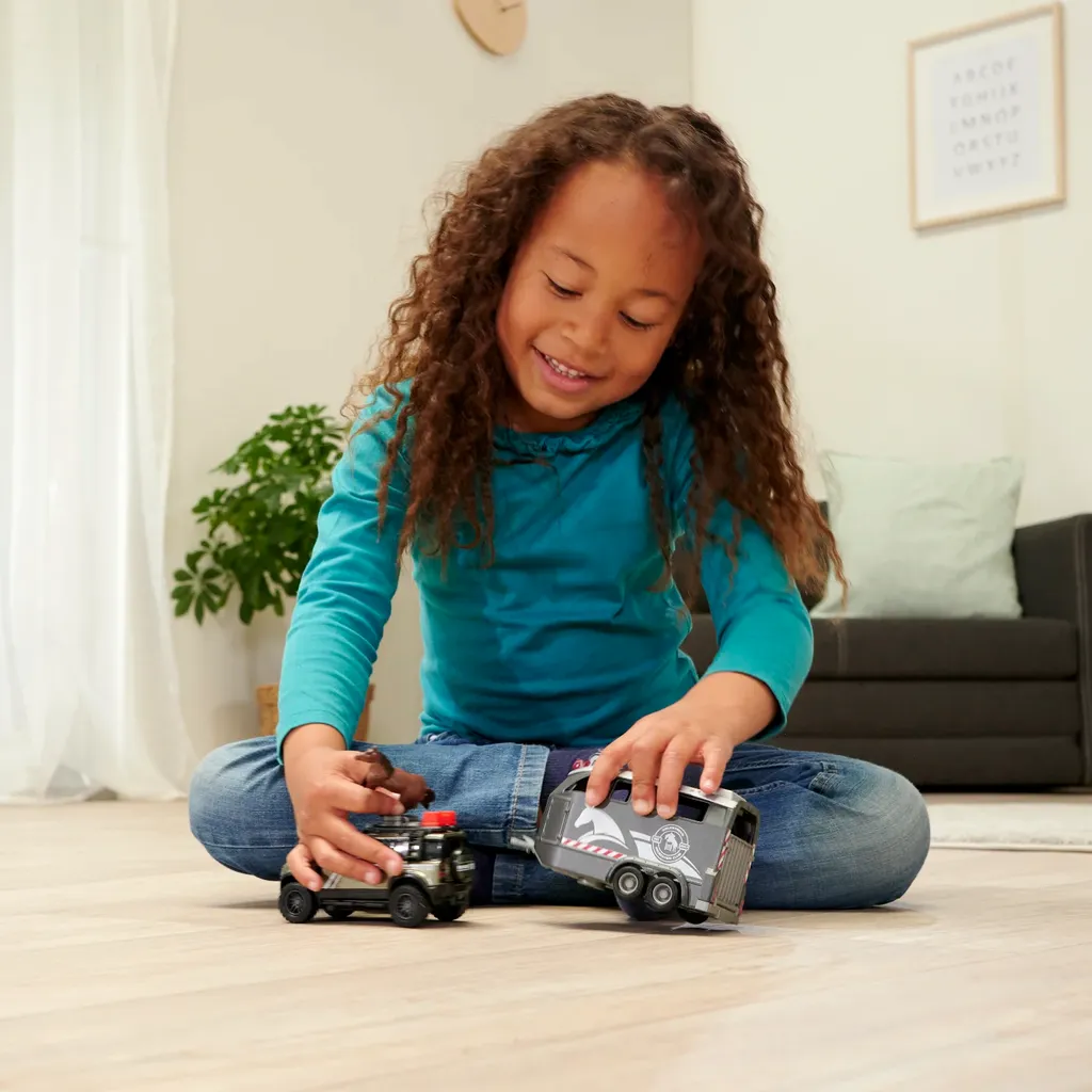 Land Roveren og traileren er hovedsageligt lavet af metal med plastikdetaljer, og vi på Leksaksbilar.se synes, at dette er en rigtig fin legetøjsbil til alle, der kan lide dyr, og især hvis man er interesseret i heste. Bilen og traileren har gummidæk.
