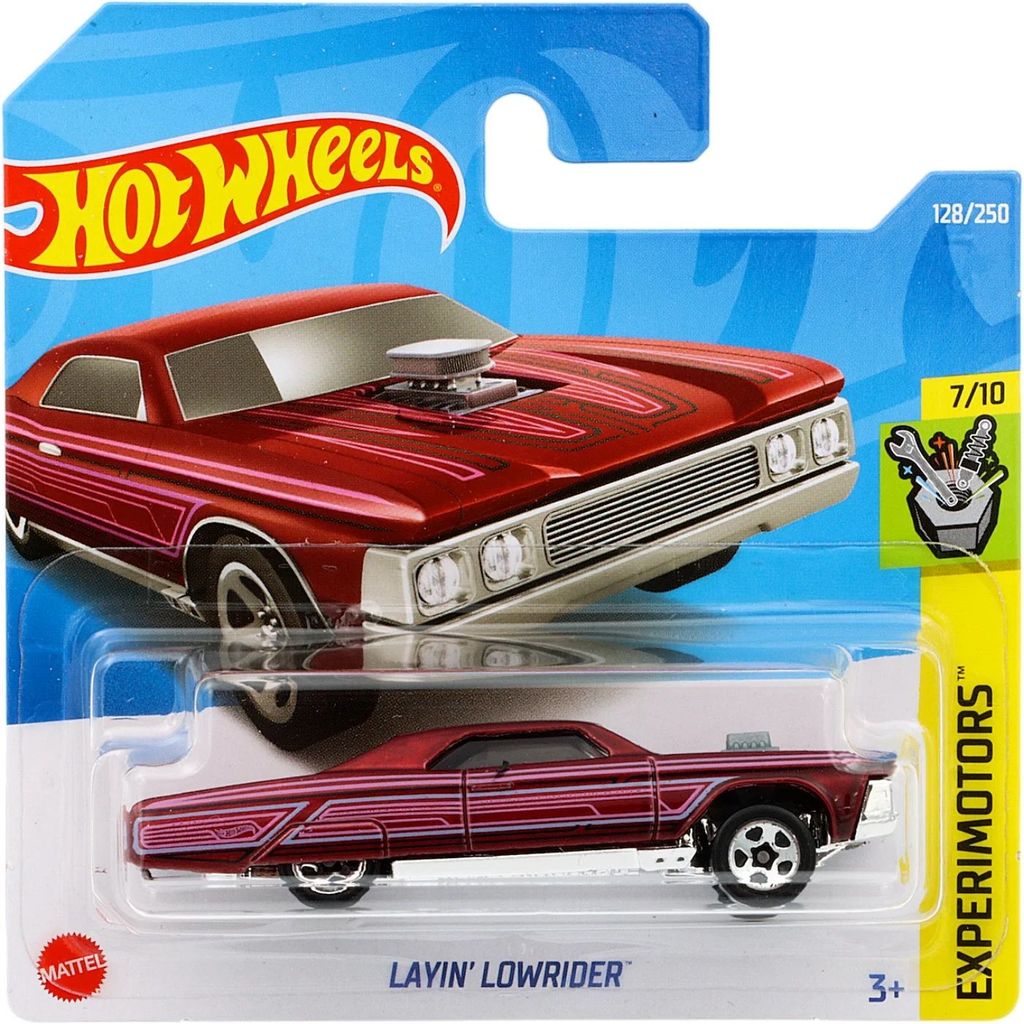 Layin? Lowrider fra Hot Wheels og Experimotors-serien, hvor denne legetøjsbil er bil nummer 7/10. Bilen er nummer 128/250 fra 2022 og har et kort kort (5785).