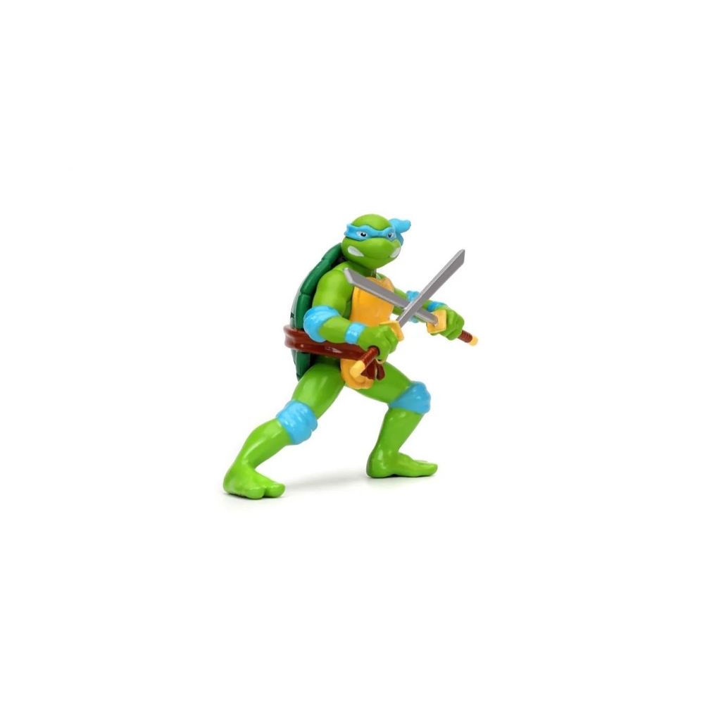 Figuren Leonardo fra Turtles og deres klassiske "Volkswagen Bus" (1962 Volkswagen Bus) fra Jada Toys i skala 1:24 (længde 21 cm).