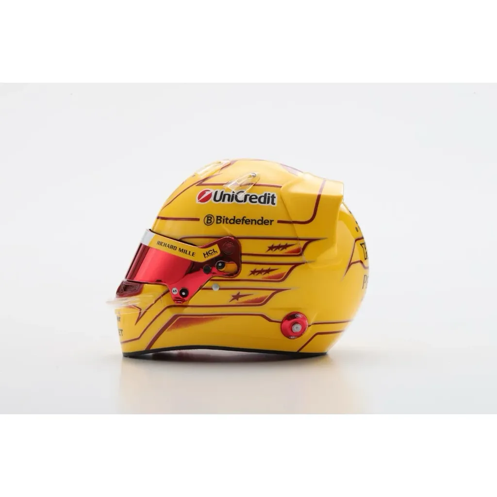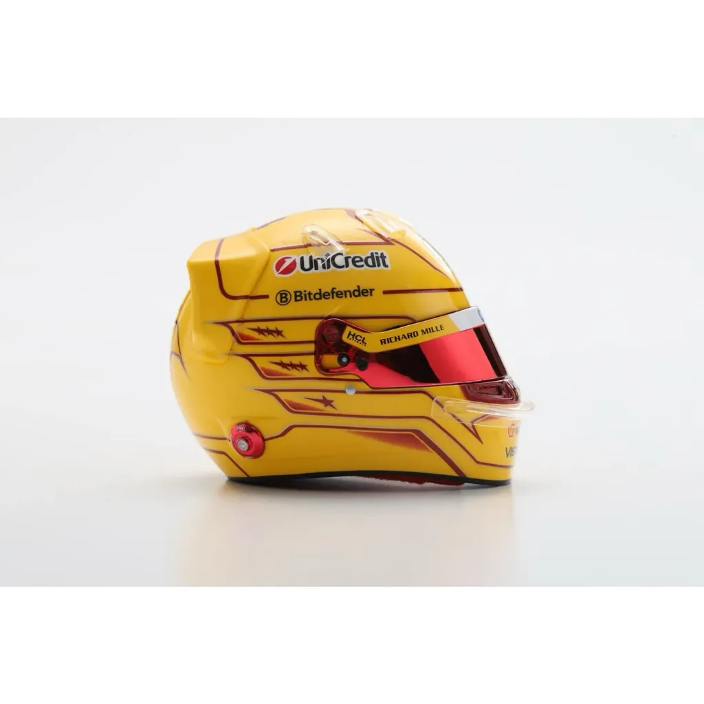 Den rigtige hjelm er en racerhjelm fra Bell. Hjelmen har en række logoer fra holdets sponsorer, bl.a. UniCredit, Bitdefender, Richard Mille, VistaJet og Peroni.