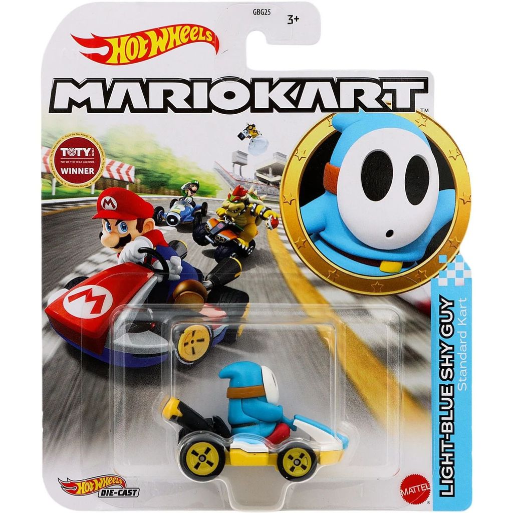 Light-Blue Shy Guy som en legetøjsbil fra Hot Wheels. Light-Blue Shy Guy kører i en gokart fra Mario Kart, og netop denne gokart er en Standard Kart.