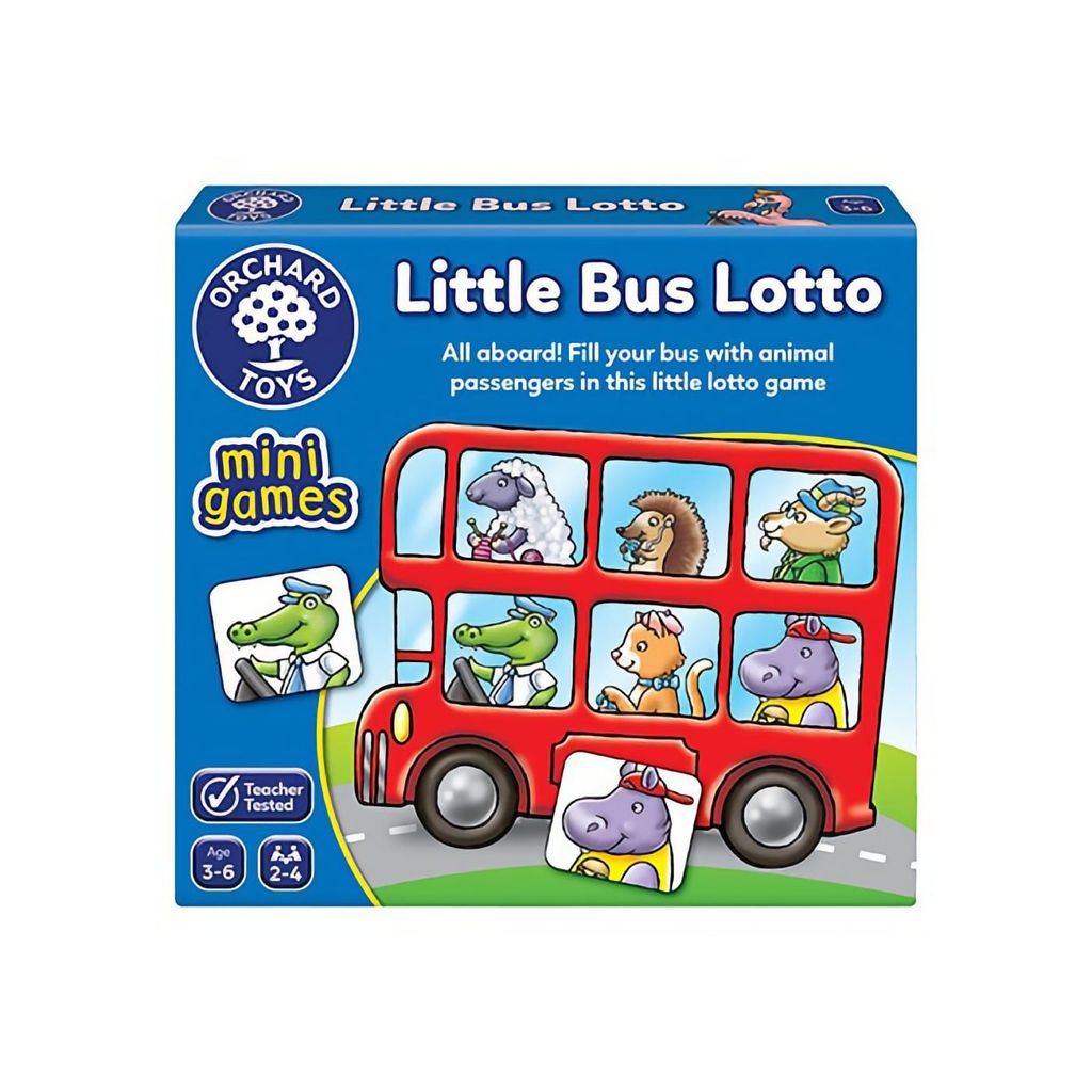 Spil fra Orchard Toys for mellem 2-4 spillere. Spillet går ud på at finde alle passagerer til sin bus ved at vende brikker. Hvis brikken ikke passer, viser du det til de andre spillere og lægger den derefter tilbage på bordet med hovedet nedad. På den måde har spillet en struktur, der minder om memory.