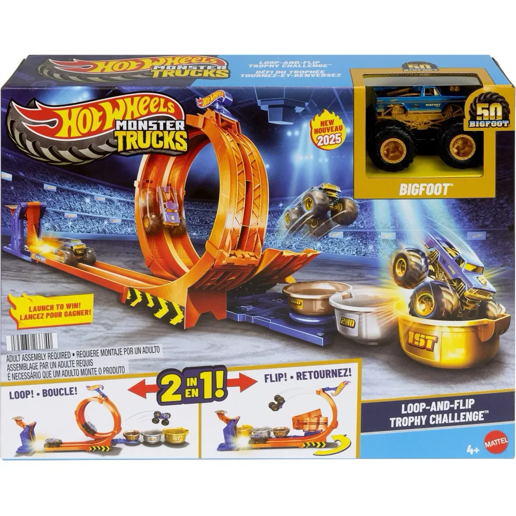 Loop-and-Flip Trophy Challenge er et legetøjssæt med loop til Hot Wheels monster trucks. Bigfoot monster truck er inkluderet.