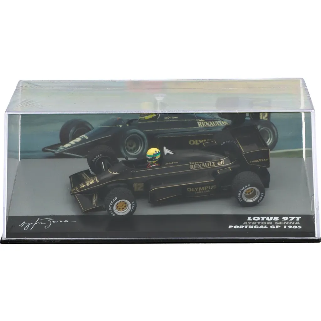 I 1985 vandt Ayrton Senna det portugisiske Grand Prix, og her har du mulighed for at købe en model af den Lotus Renault 97T, som han kørte i. Skalaen er 1:43 (10 cm) og producenten Altaya.