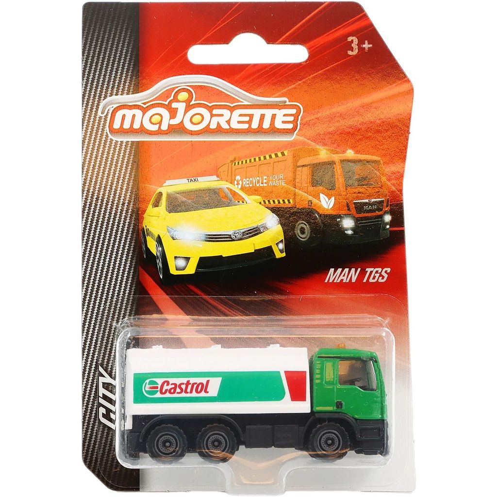 Tankbil fra Majorette and the City-serien. Tankbilen, som er en MAN TGS fra Castrol, er ca. 7,9 cm lang.