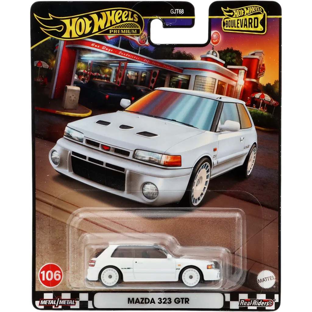 Mazda 323 GTR fra Hot Wheels og Boulevard-serien (Mix 4, 2024), hvor denne bil er nummer 106.