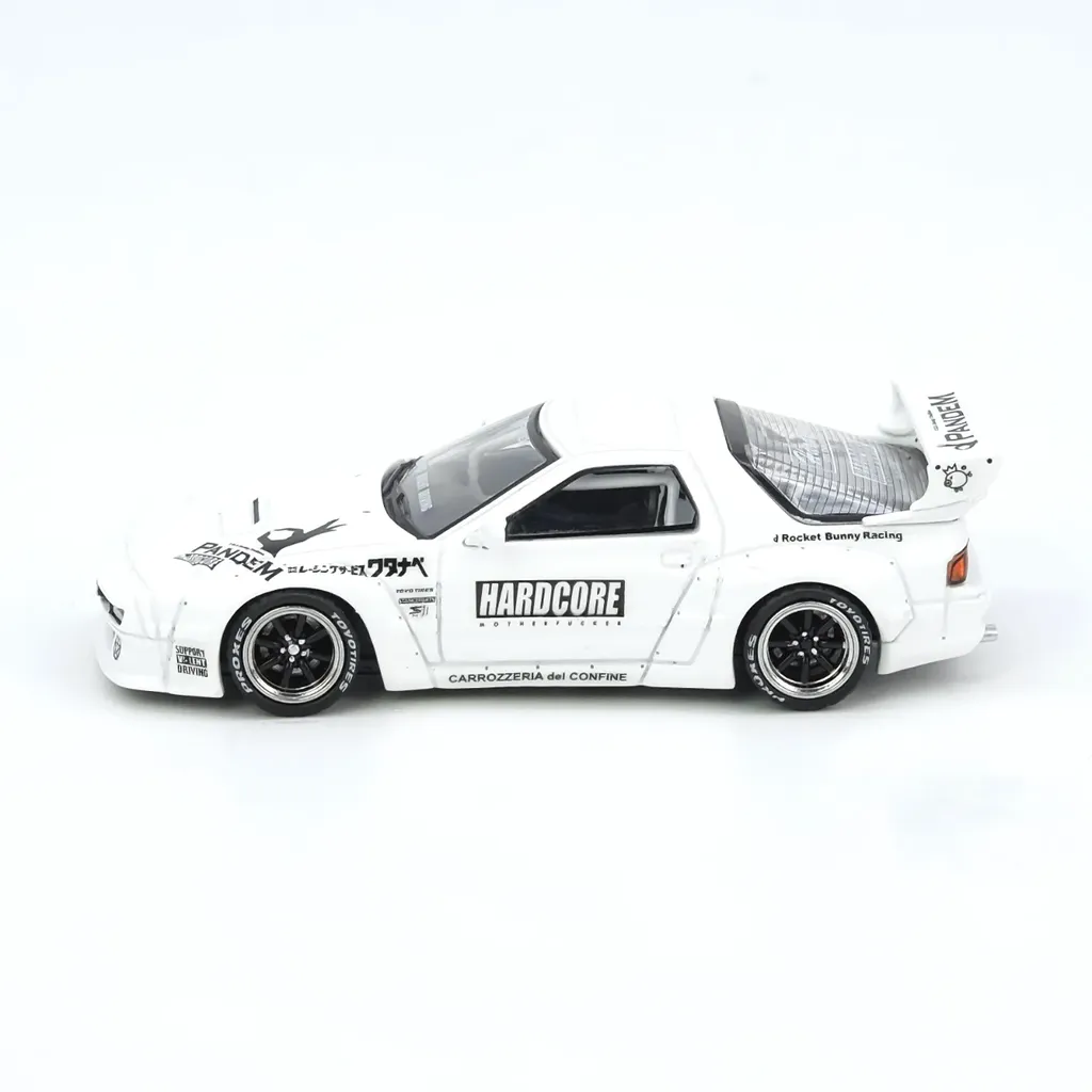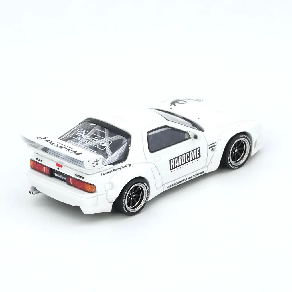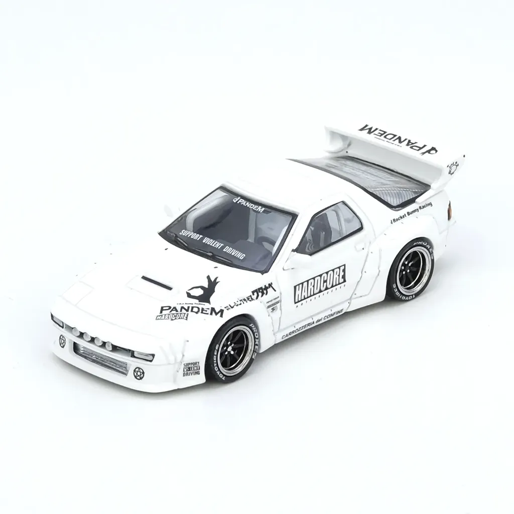 Mazda RX-7 (FC3S) "Pandem Aero" i hvid med bodykit fra Pandem / Rocket Bunny som modelbil fra Inno Models / Inno64. Mazdaen er i skala 1:64 (6,8 cm).