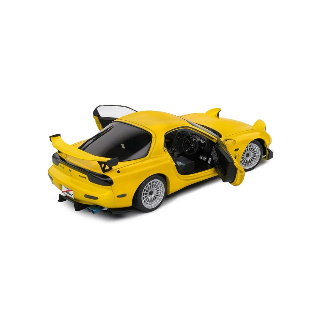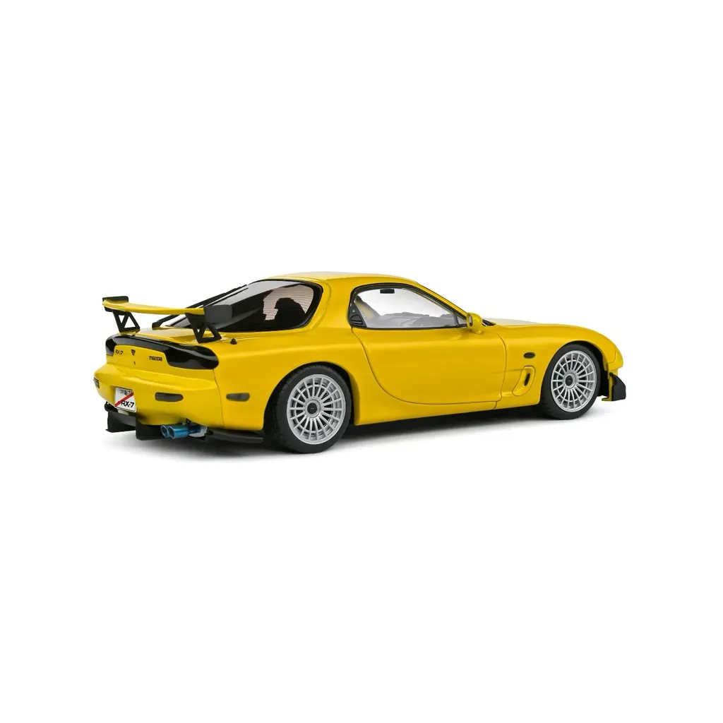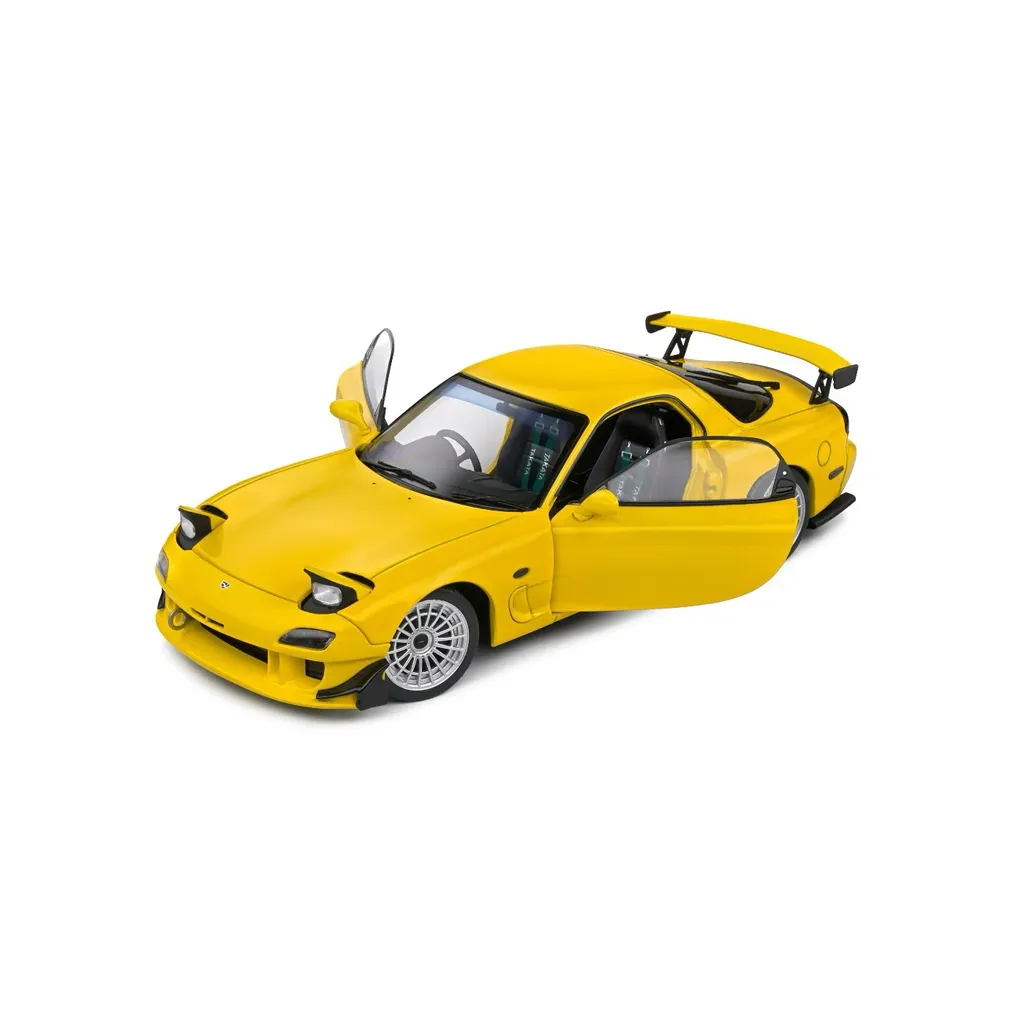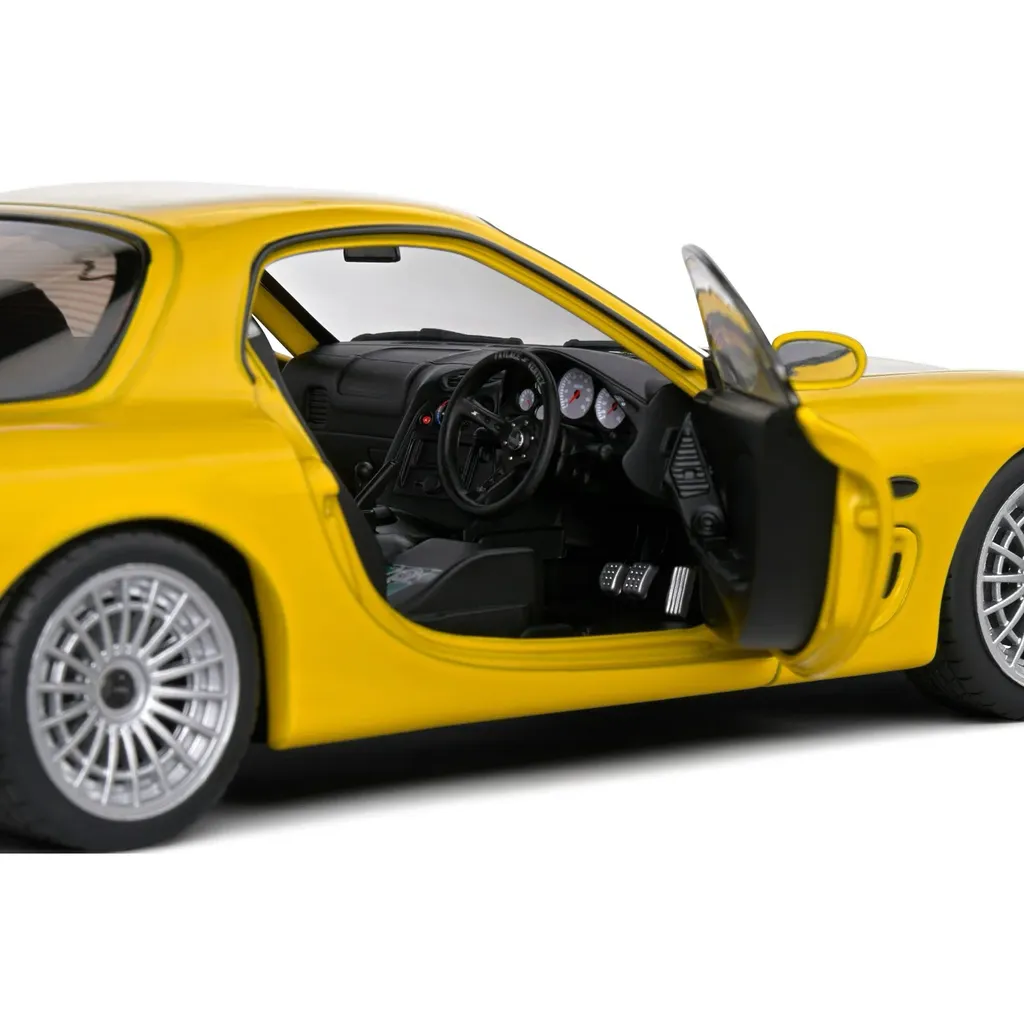 Gul Mazda RX-7 Type RS (FD3S), modelår 1999, som modelbil fra Solido. Skala 1:18 (24 cm).