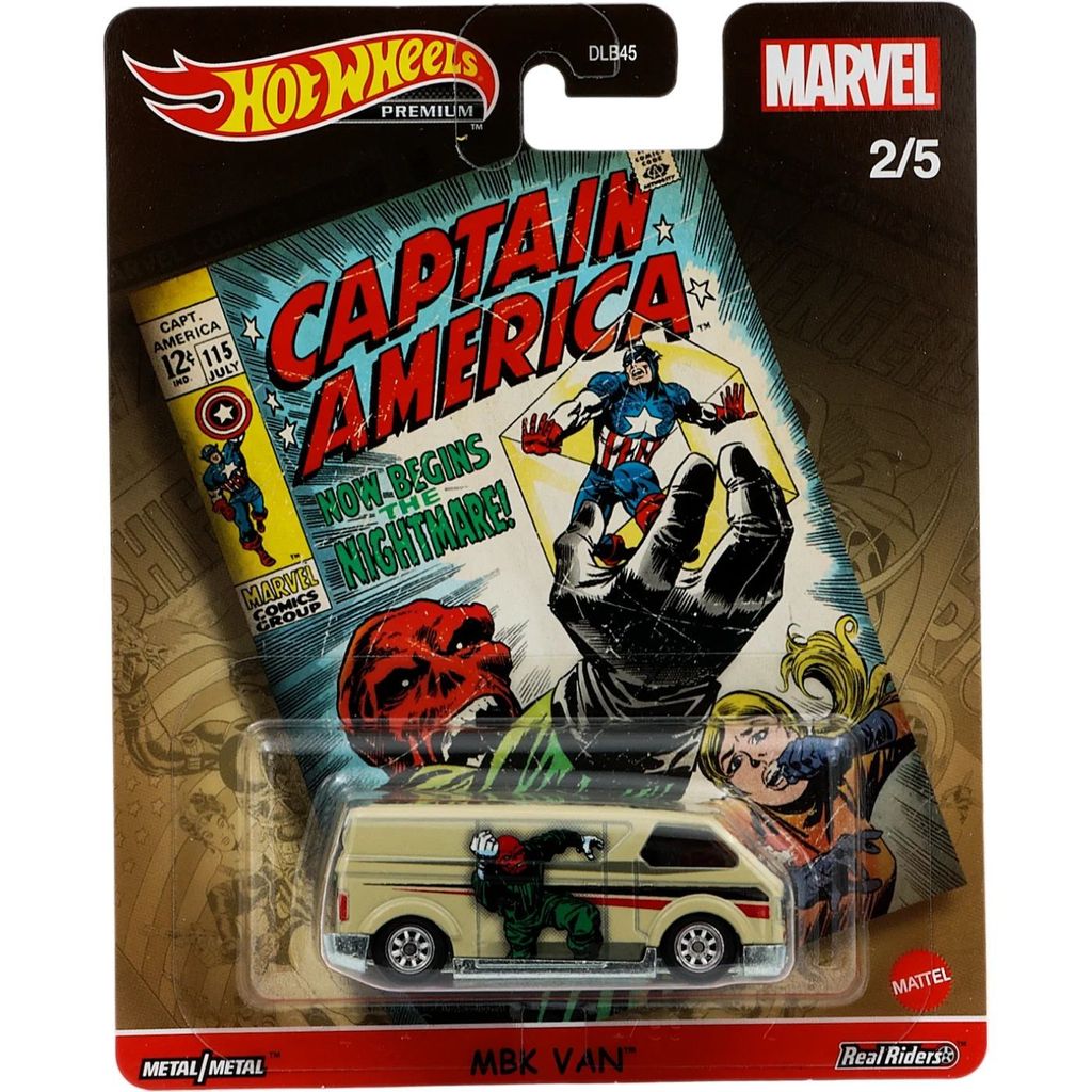 MBK VAN med Captain America-tema fra Hot Wheels. Bilen er en del af Pop Culture: Marvel-sættet fra 2021.