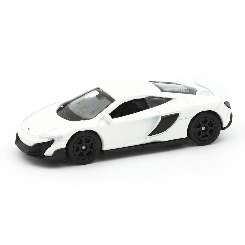Hvid McLaren 675LT som en lille (7 cm / skala 1:64) legetøjsbil fra Welly og deres McLaren Series-sortiment.
