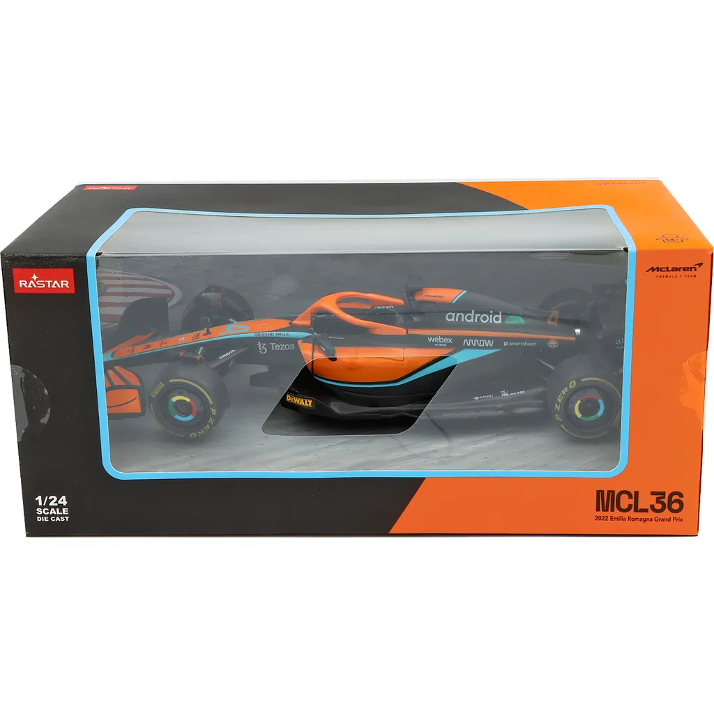 McLaren MCL36 med nummer 4 blev kørt af Lando Norris i F1-sæsonen 2022, og netop denne bil blev kørt under Emilia-Romagna Grand Prix på Imola-banen i Italien. Modellen er lavet af Rastar i skala 1:24 (23 cm).