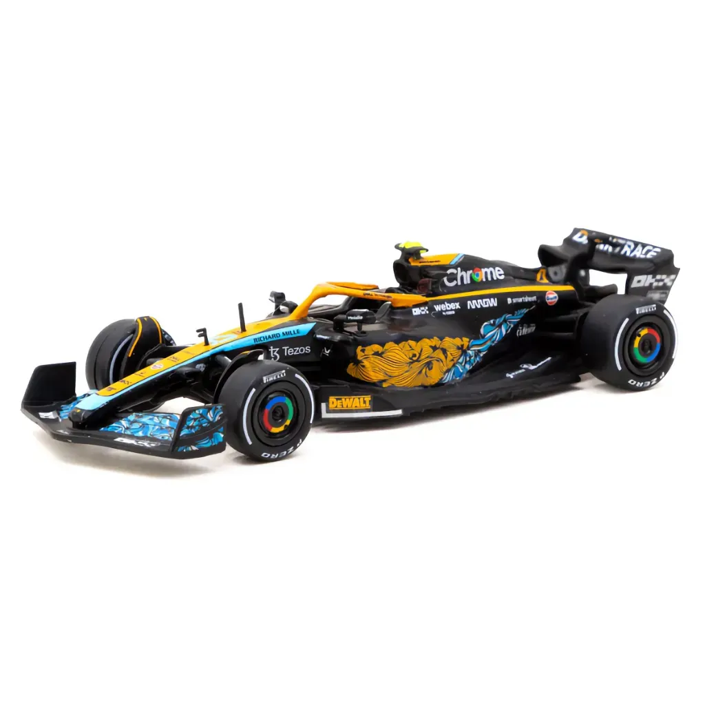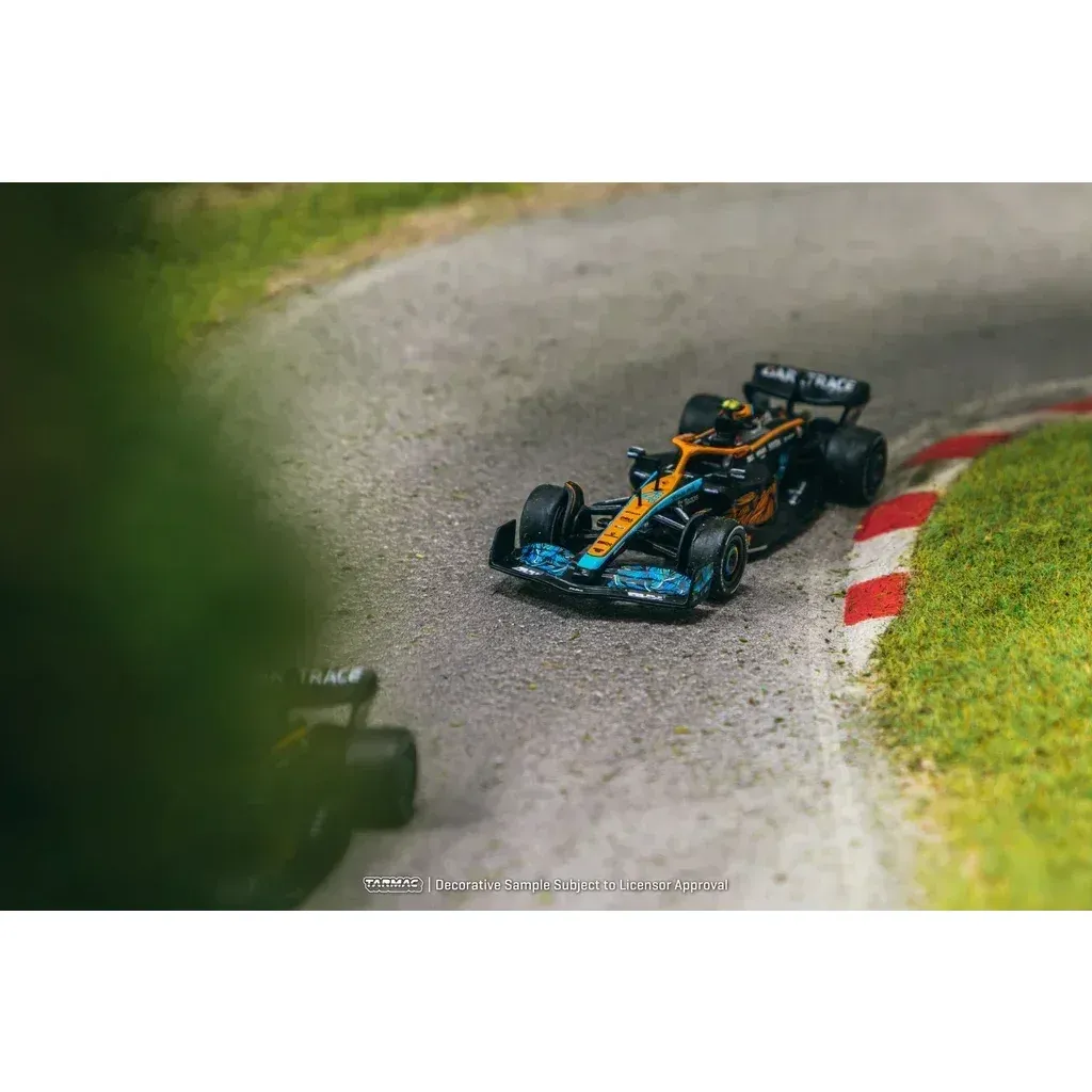 Lando Norris' McLaren MCL36 Formel 1-bil, som han kørte i under Abu Dhabi Grand Prix 2022, er en Tarmac Works-model i skala 1:64 (ca. 7 cm).