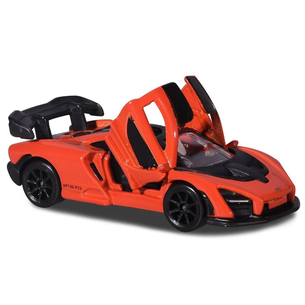 Orange McLaren Senna i skala 1:56 fra Majorettes Premium Cars-serie.