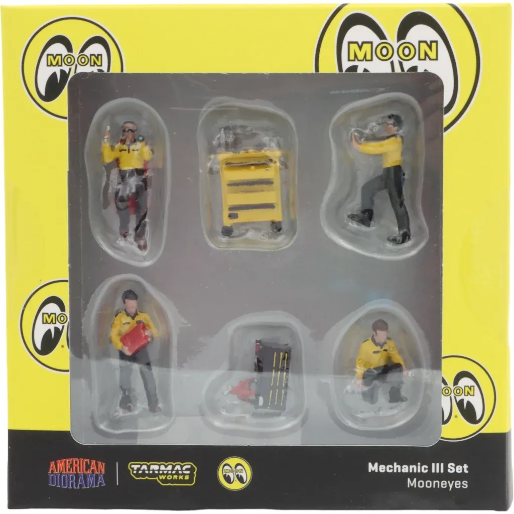 Dioramafigurer i skala 1:64 fra Tarmac Works i samarbejde med American Diorama. Dette sæt hedder Mechanic III Set Mooneyes.