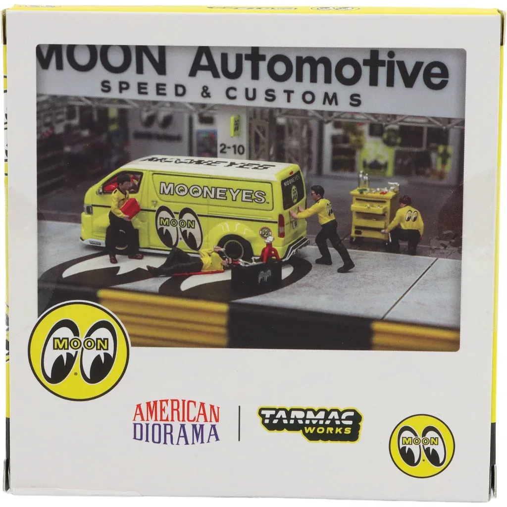 Dioramafigurer i skala 1:64 fra Tarmac Works (PARTS64-serien) i samarbejde med American Diorama. Dette sæt hedder Mechanic III Set Mooneyes.