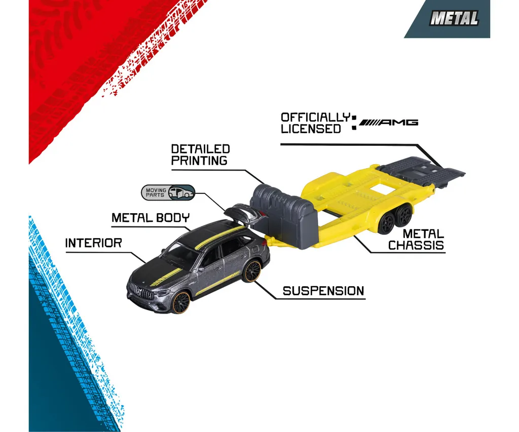 En del af Mercedes-AMG Deluxe Trailer-serien fra producenten Majorette.