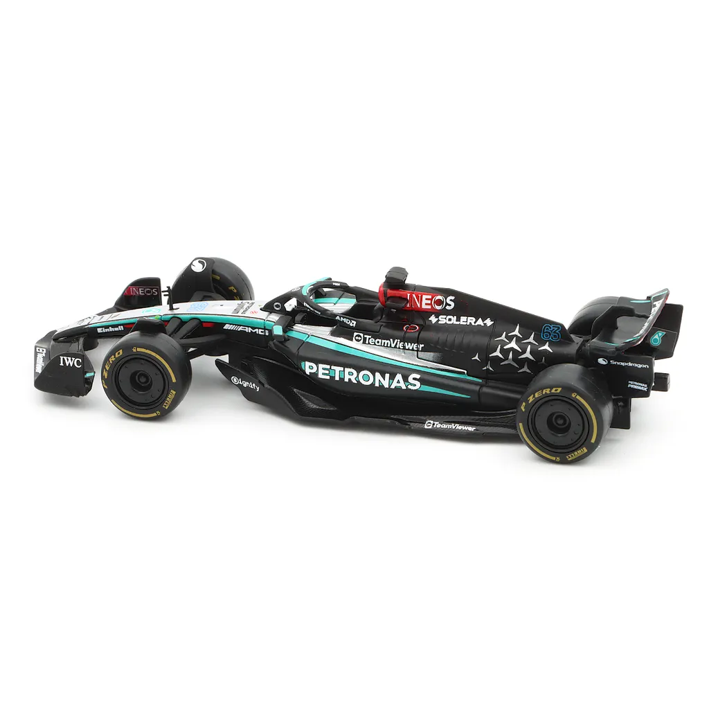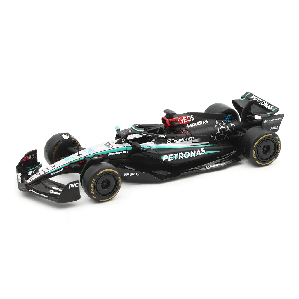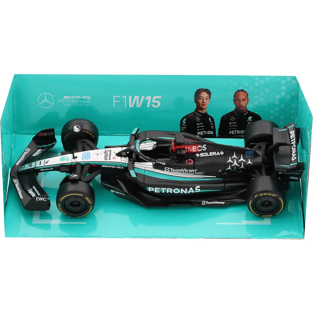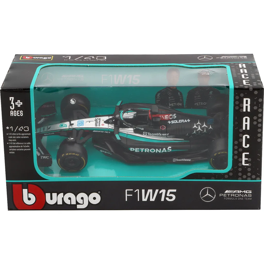 Mercedes-AMG W15 E Performance med nummer 63 blev kørt af George Russell i F1-sæsonen 2024. Denne legetøjsmodel er lavet af Bburago i skala 1:43, hvilket betyder, at den er 13 cm lang.