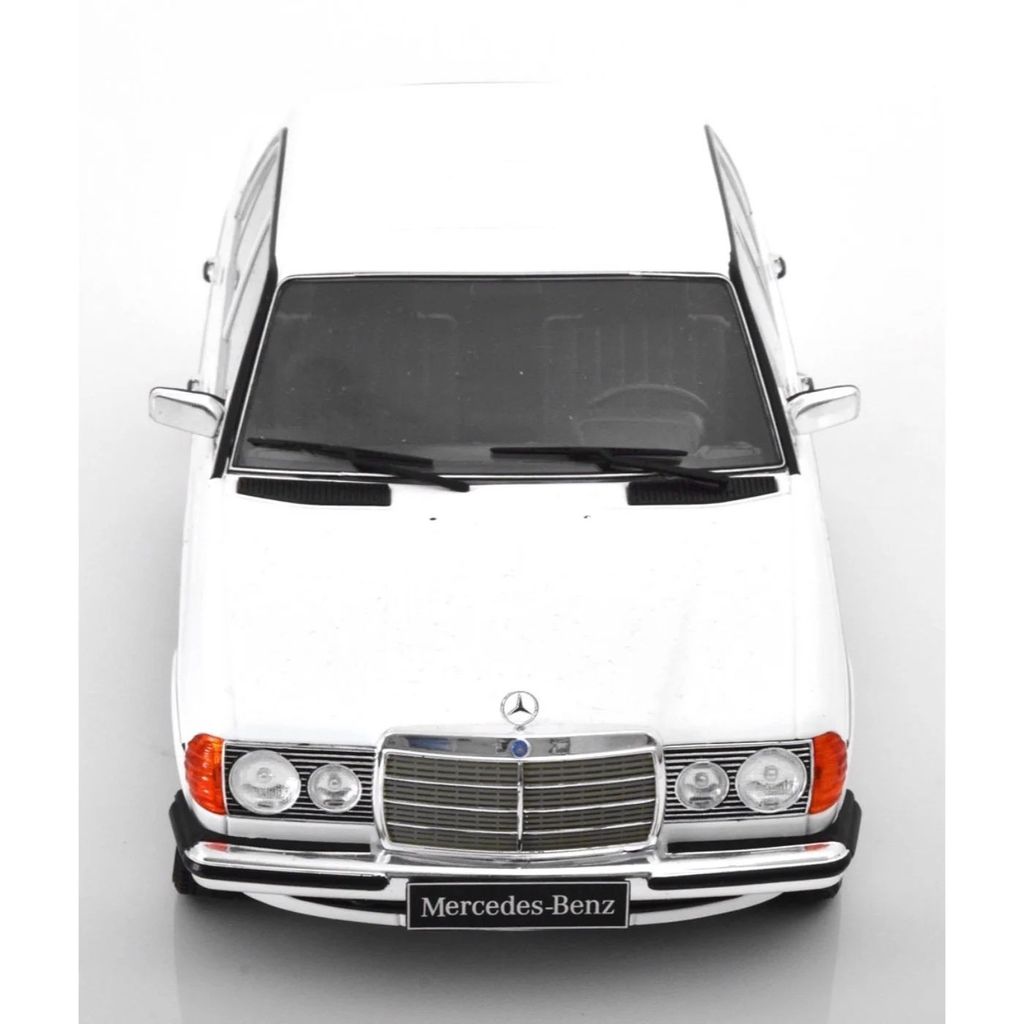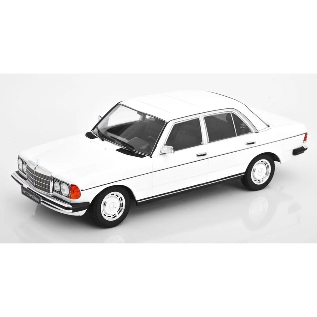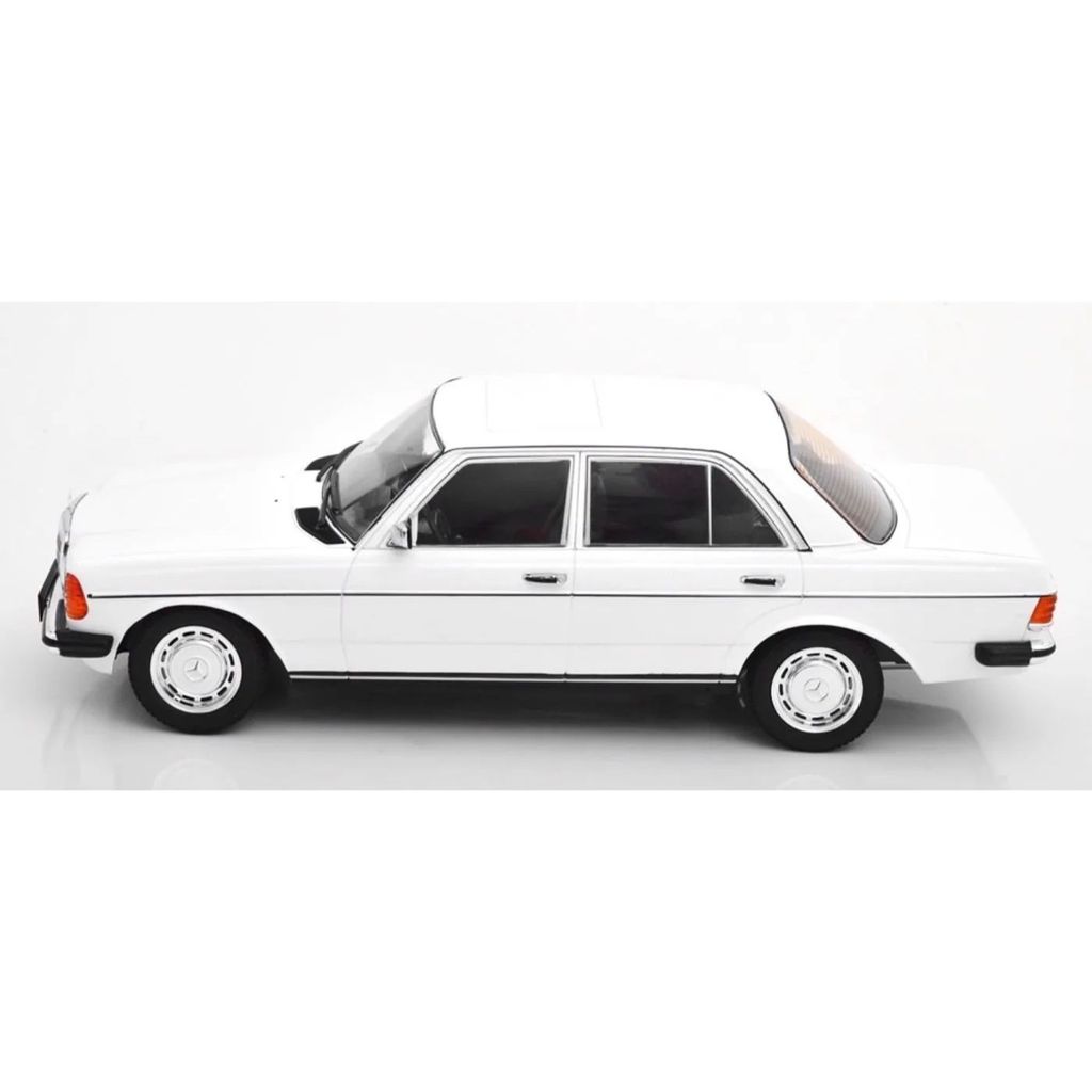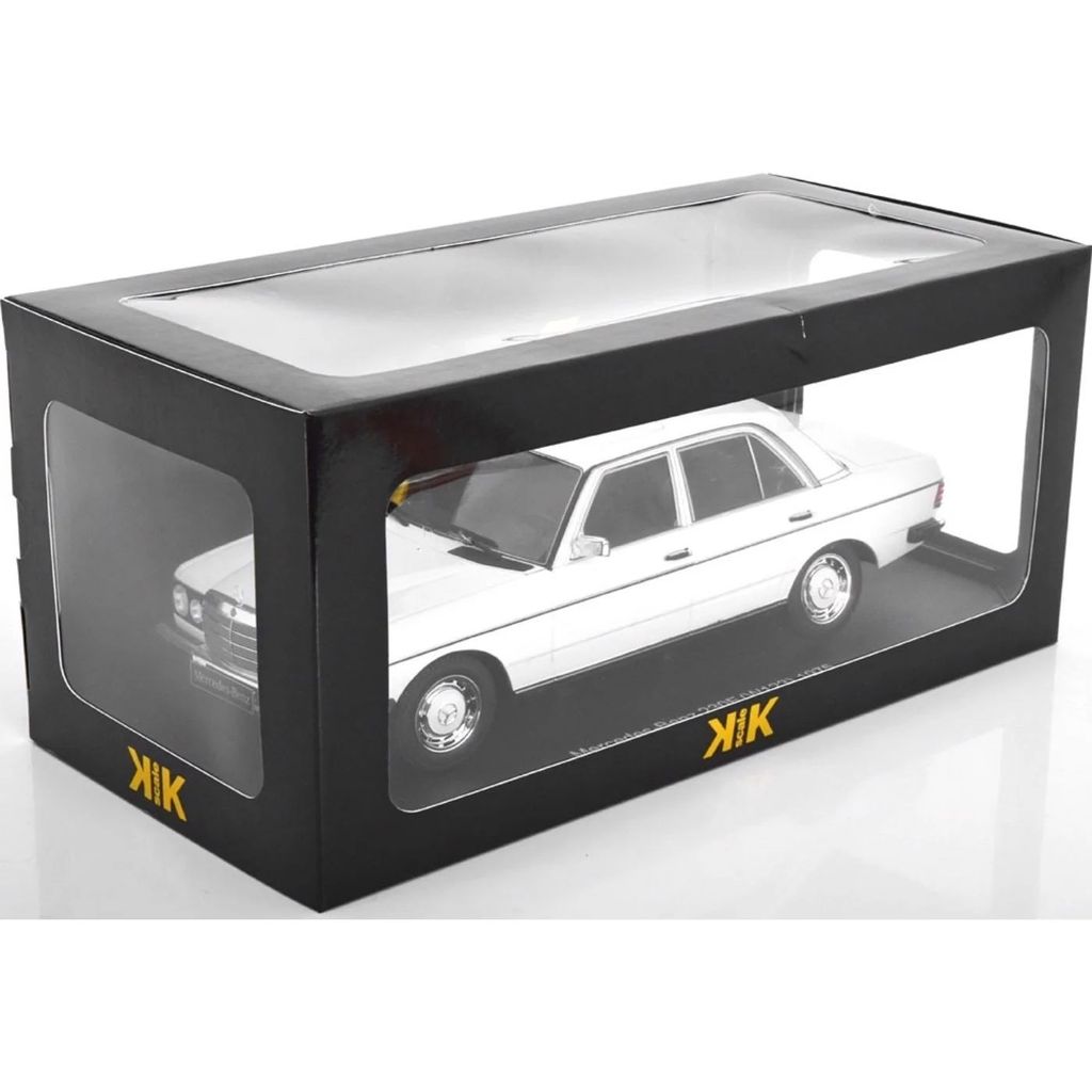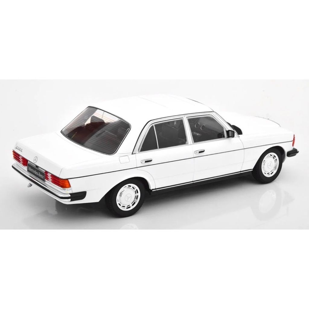 Hvid Mercedes-Benz 230 E (W123) fra KK-Scale i skala 1:18 (26 cm).