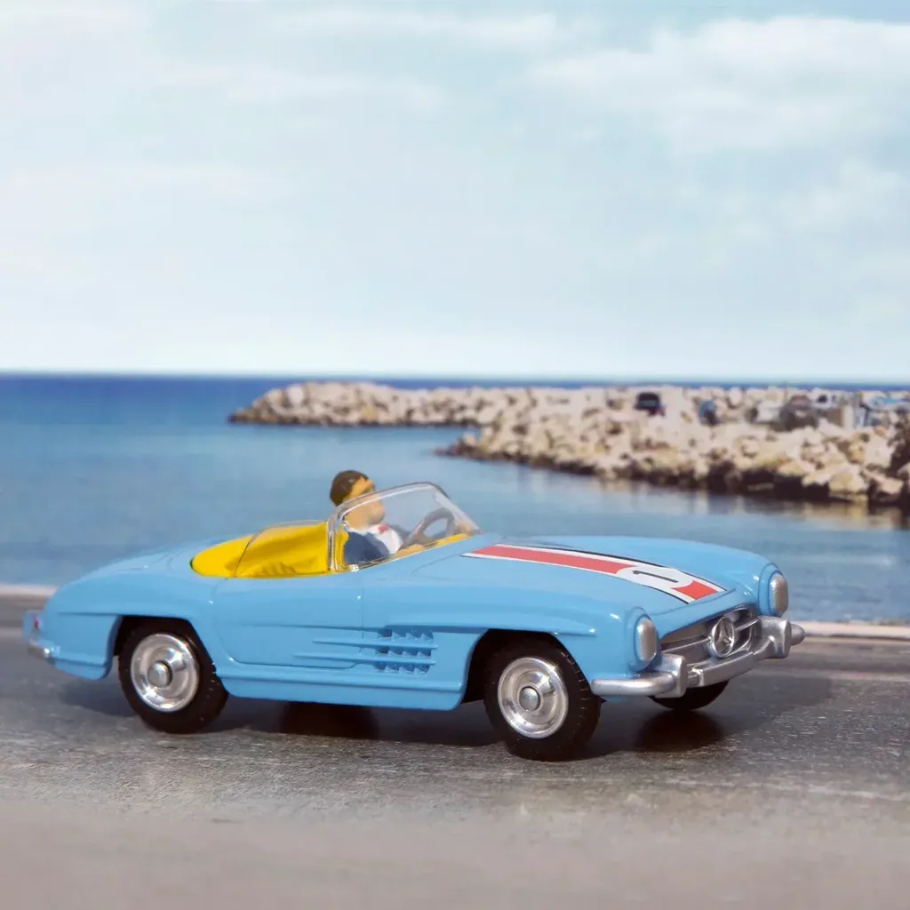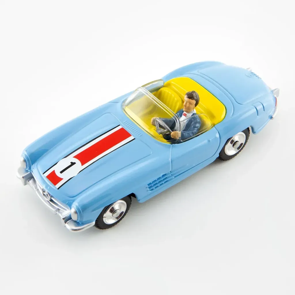 Blå Mercedes-Benz 300 SL Roadster modelbil fra Corgi Toys i skala 1:46 (9,5 cm).