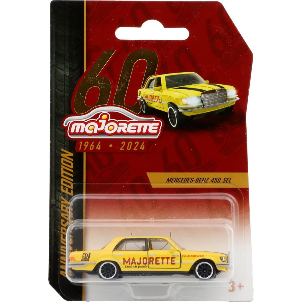 Gul Mercedes-Benz 450 SEL fra Majorette og Anniversary Edition-serien produceret til Majorettes 60-års jubilæum i 2024.