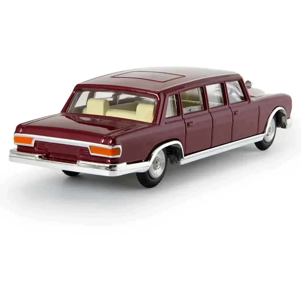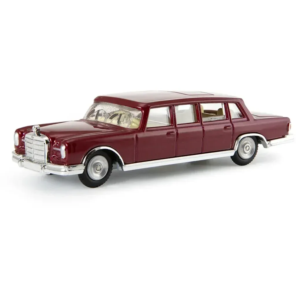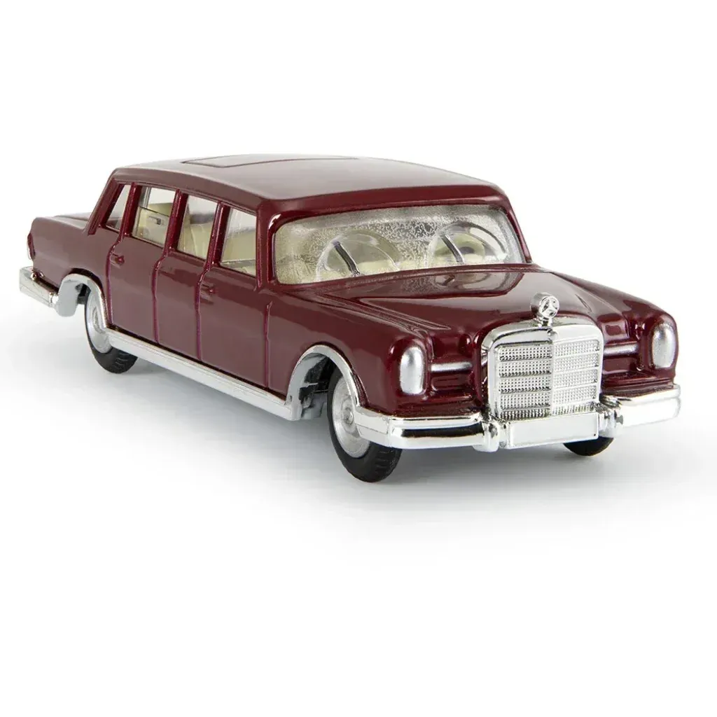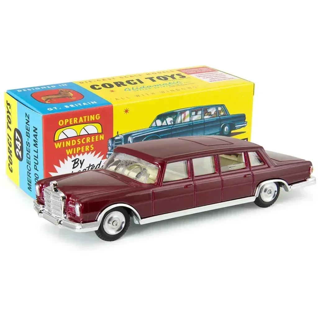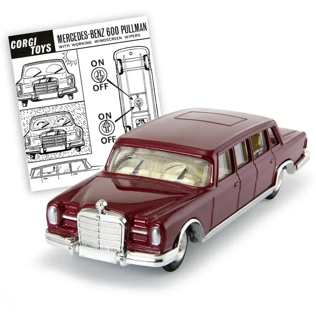 Vinrød Mercedes-Benz 600 Pullman modelbil fra Corgi Toys i skala 1:52 (11,7 cm).