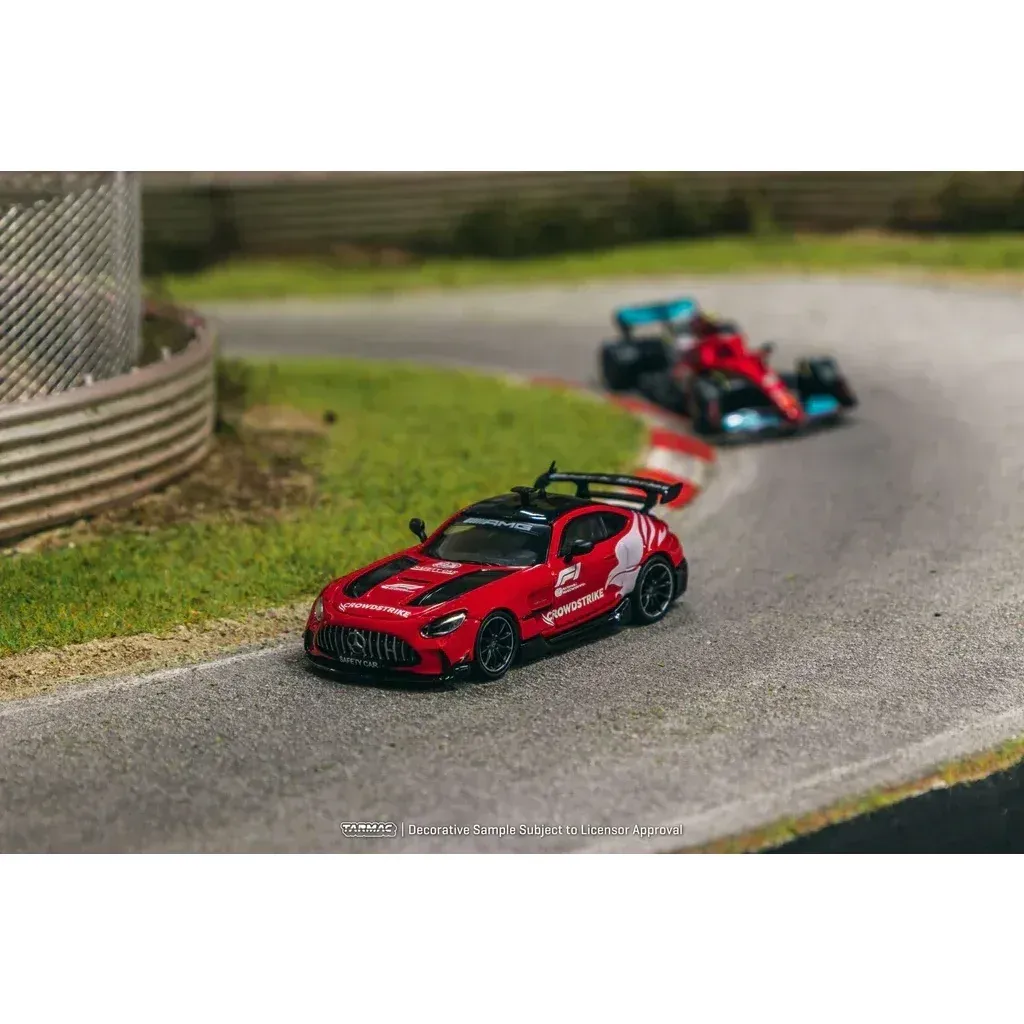 Rød Mercedes-Benz AMG GT Black Series Safety Car fra modelbilproducenten Tarmac Works og GLOBAL64-serien i skala 1:64 (ca. 7 cm).